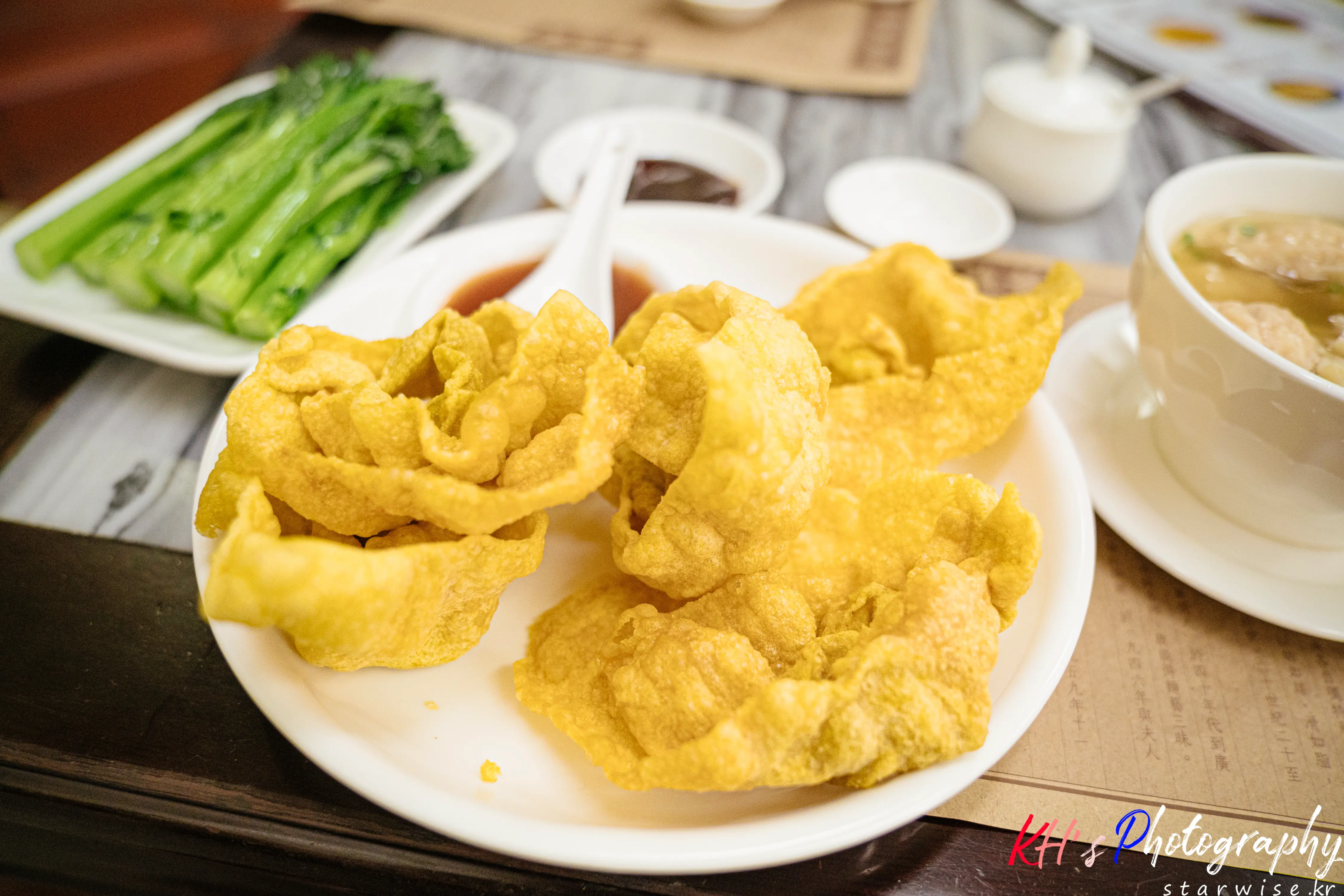 주문한 요리가 모두 튀김 / 찜요리라서 영양적 밸런스(?)를 위해 주문한 채소요리.. 모닝글로리(공심채)를 한번 데쳐서 살짝 기름에 둘러서 나온 맛이다. 그래도 야채 특유의 아삭한 식감은 있어서 먹을만했다. 튀김의 느끼함도 좀 잡아주고 새우완탕의 심심한 맛을 보완해 주는 채소이다. 6점!
