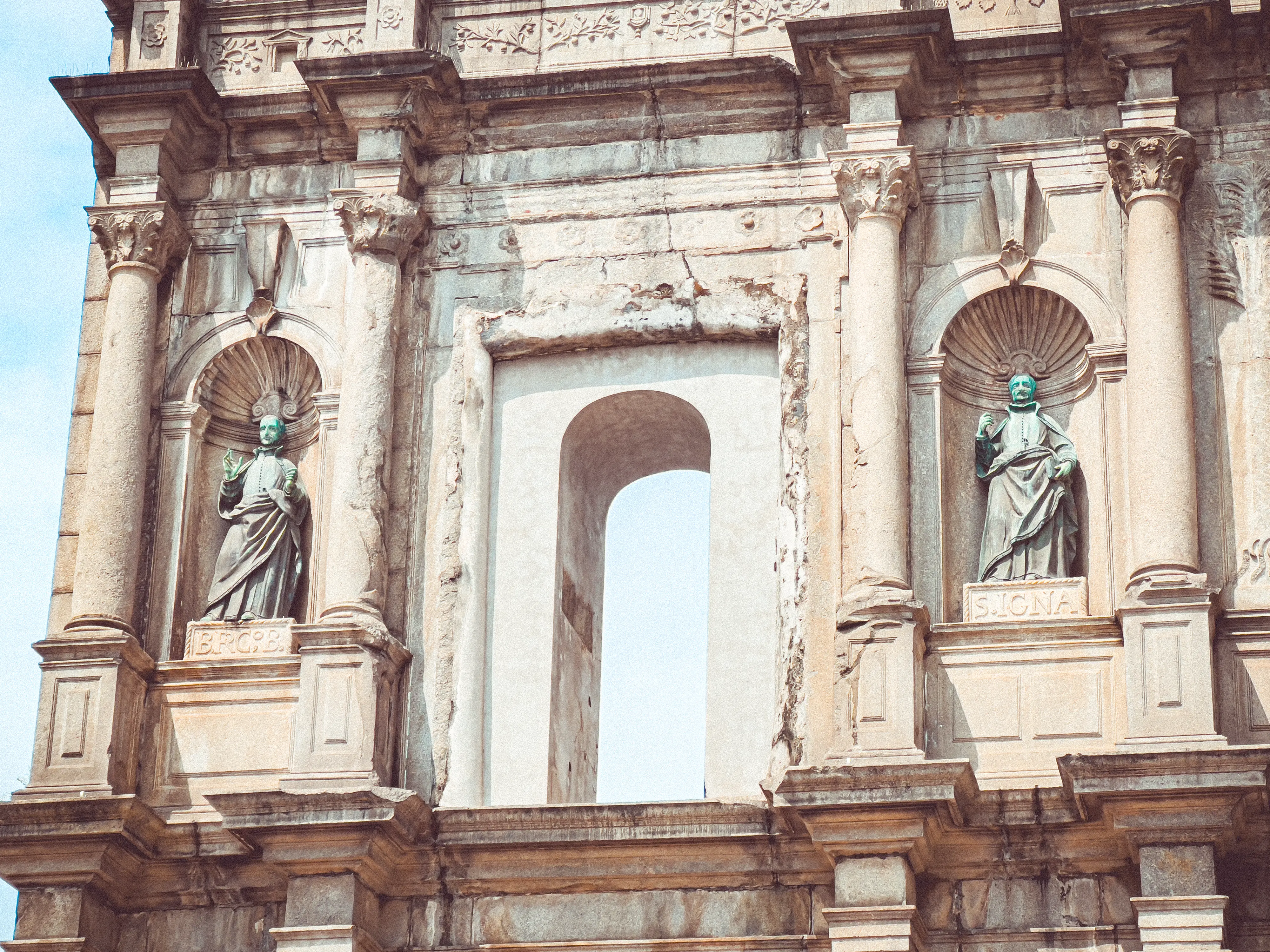 이곳은 6세기 후반 예수회 선교사들이 세운 웅장한 가톨릭 성당이었다고 한다. 1582년에 처음 건설되기 시작한 이곳은, 이후 1602년에 더 큰 규모로 재건되면서 아시아에서 가장 큰 교회 중 하나가 되었는데 당시 이 성당은 유럽과 아시아 건축 양식이 조화를 이룬 독특한 디자인을 가지고 있었고, 마카오에서 가톨릭 신앙을 전파하는 중심지 역할을 했다고 한다. 하지만 1835년, 큰 화재가 발생하면서 성당의 대부분이 소실되었고, 현재는 정면 벽(파사드)과 계단만 남아 있다. 이 남은 구조물이 바로 우리가 지금 볼 수 있는 ‘세인트 폴 성당의 유적’인 것이다.