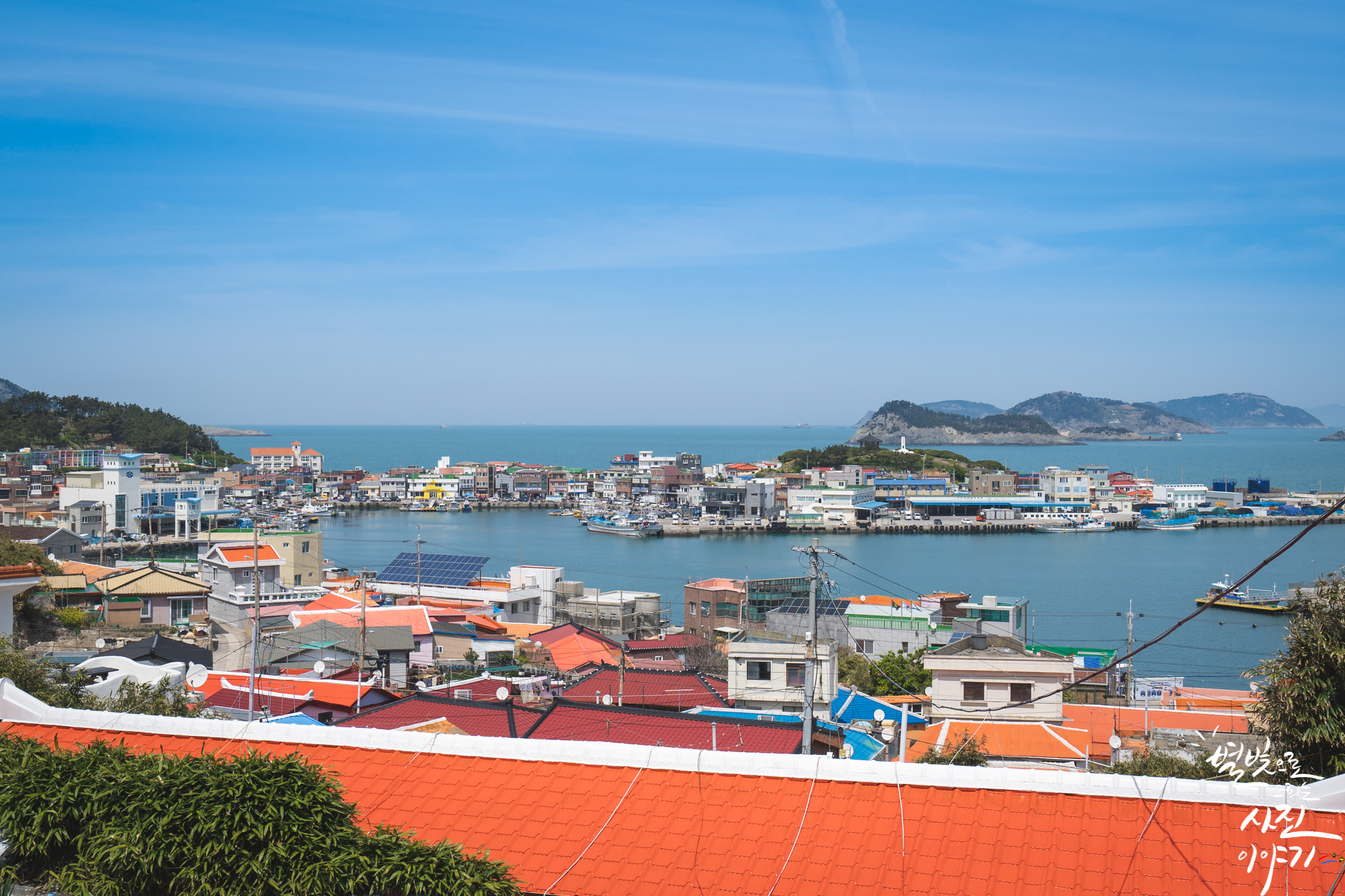 잠시 숨을 돌리려 뒤를 바라보니, 상추자도의 마을 모습이 한 눈에 들어옵니다.