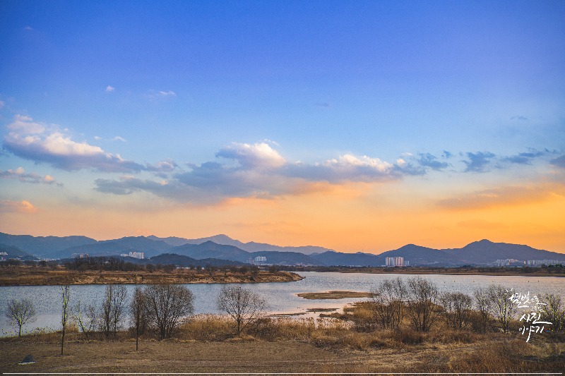 디아크를 본격적으로 촬영해보기 전에 그 주변을 한바퀴 둘러보기로 한다. 천천히 걷다보니 저 멀리 석양이 지고 산등성이들이 보인다. 역시 대구가 분지형태인 것을 알 수 있는 대목이다. 제주가 주변에 가면 바다가 보이듯이 대구는 외곽지로 가면 항상 산등성이들이 맞이해준다. 눈앞에는 대구광역시시내와 금호강이 보인다. 앞에 있는 금호강의 물줄기가 남쪽으로 흘러가 낙동강으로 합쳐진다고 한다.