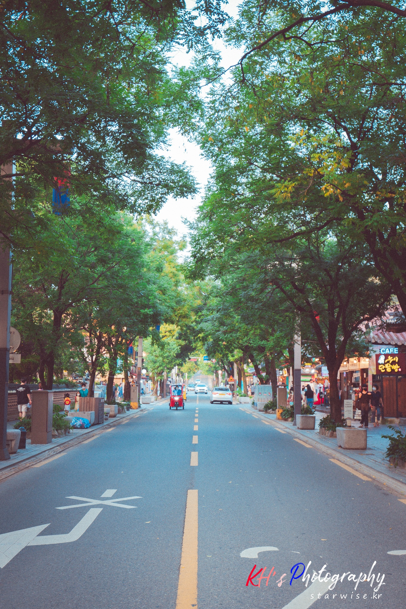 한옥마을을 가로질러, 전망이 끝내준다는 카페로, 향한다.