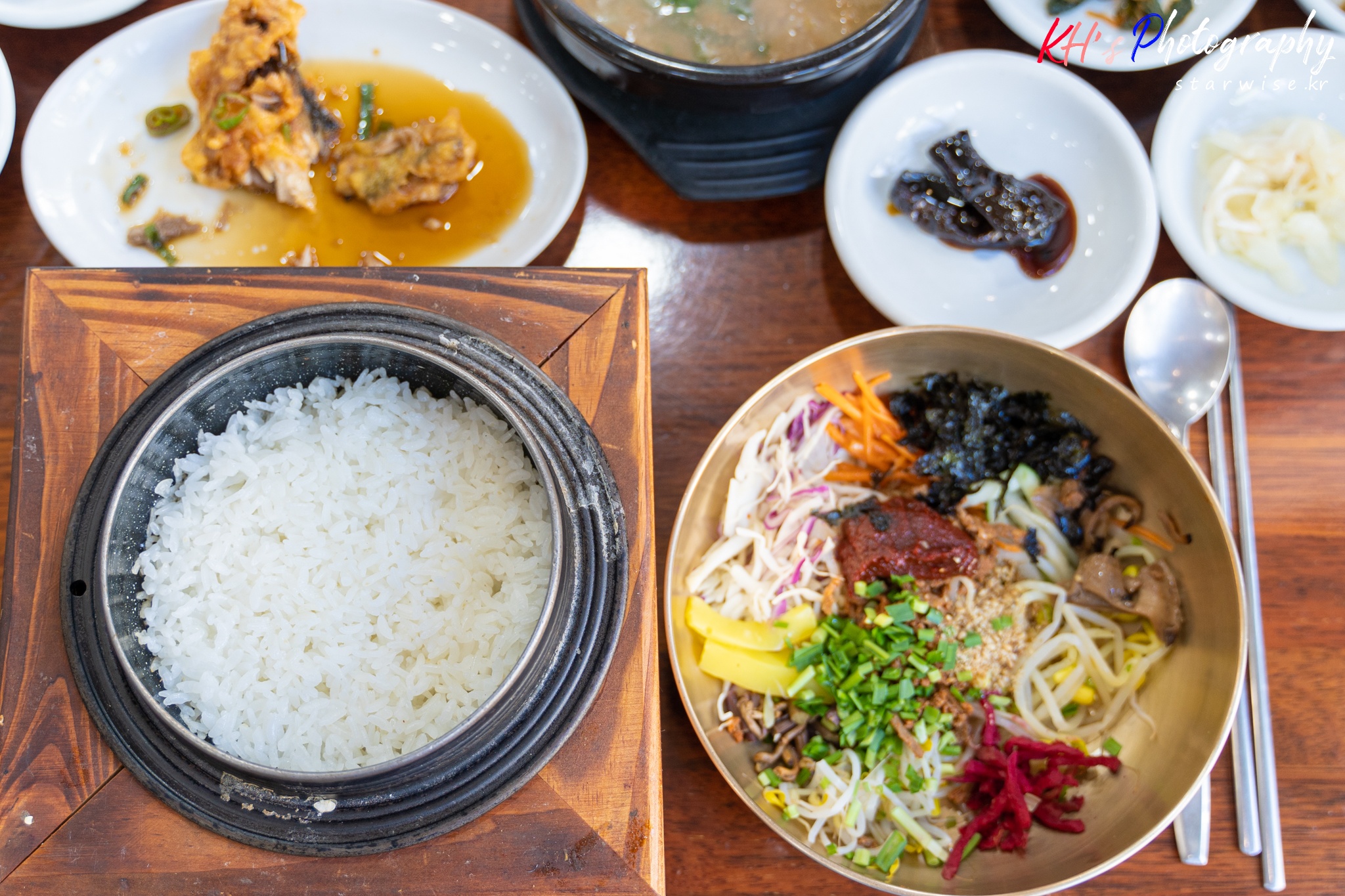 가게로 들어가서 가장 기본인 가마솥비빔밥을 주문하니 반찬이 나옵니다..!!
