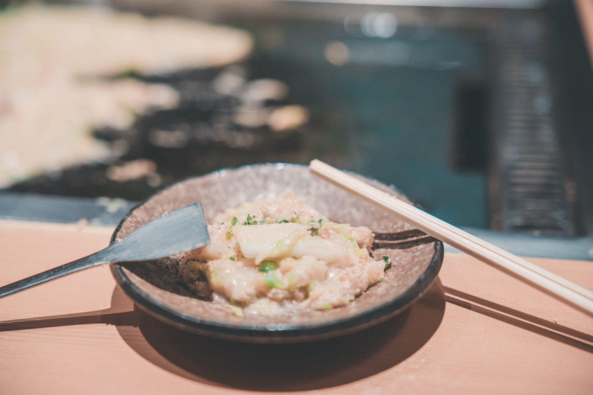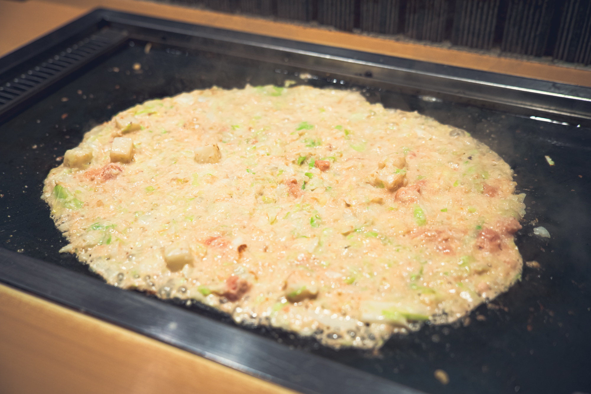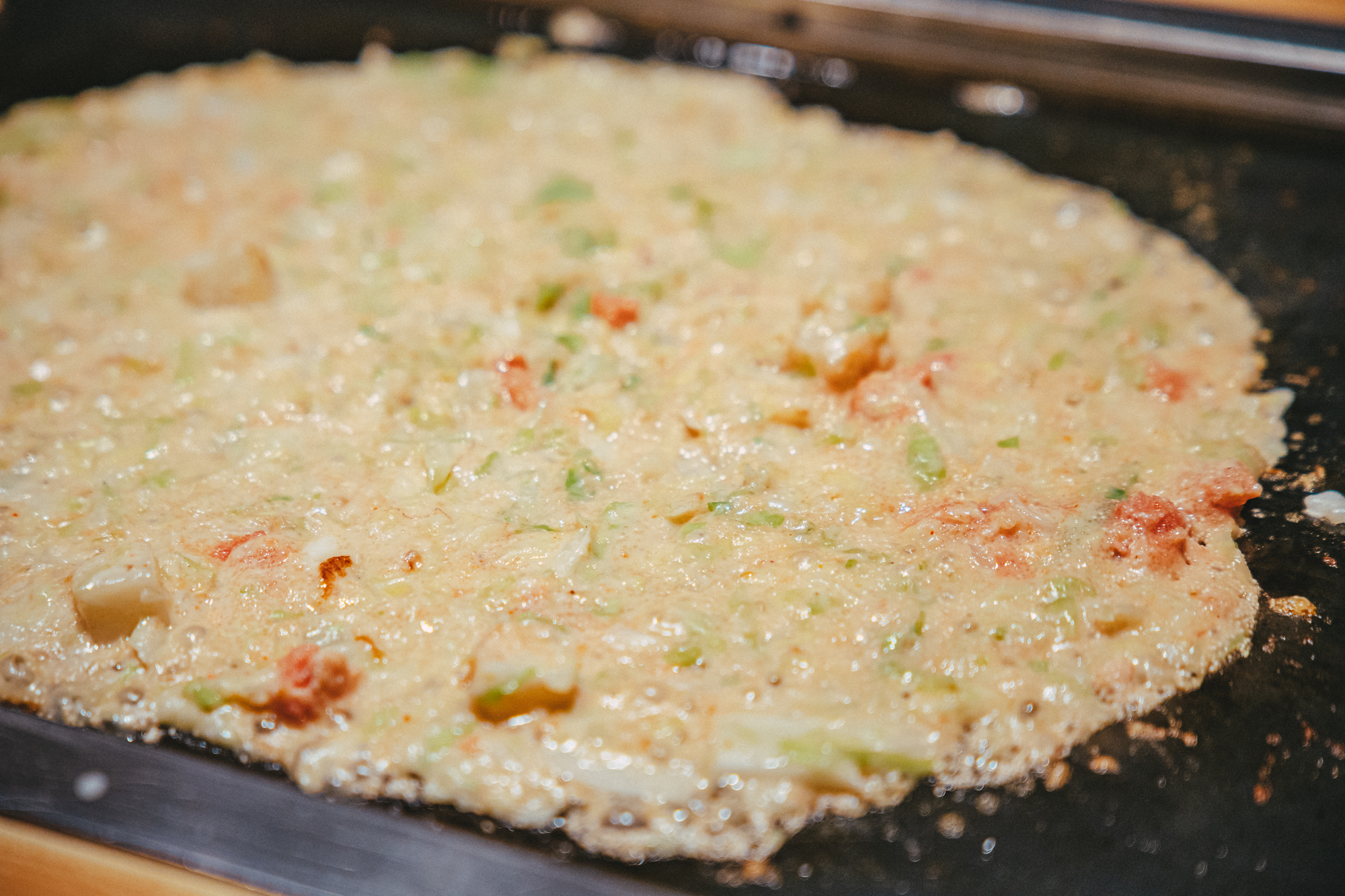 이곳의 메인메뉴 "명란젠야 몬쟈야키"이다. 가끔 셀프로 해 먹어야 하는 오코노미야키와 달리, 다행히 이곳은 점원분들이 직접 만들어주기 때문에 어떻게 먹지? 하고 걱정을 하지 않아도 된다. 그렇지만 딱 하나 단점이라면, 영어 메뉴만을 달라고 안 하면 100% 일본어만 적힌 메뉴판을 주기 때문에 반드시 "에고 메뉴 쿠다사이"를 기억할 것..! (뭐 사실 메뉴도 히라가나로 적혀있어서 읽기 쉽긴 하다.)