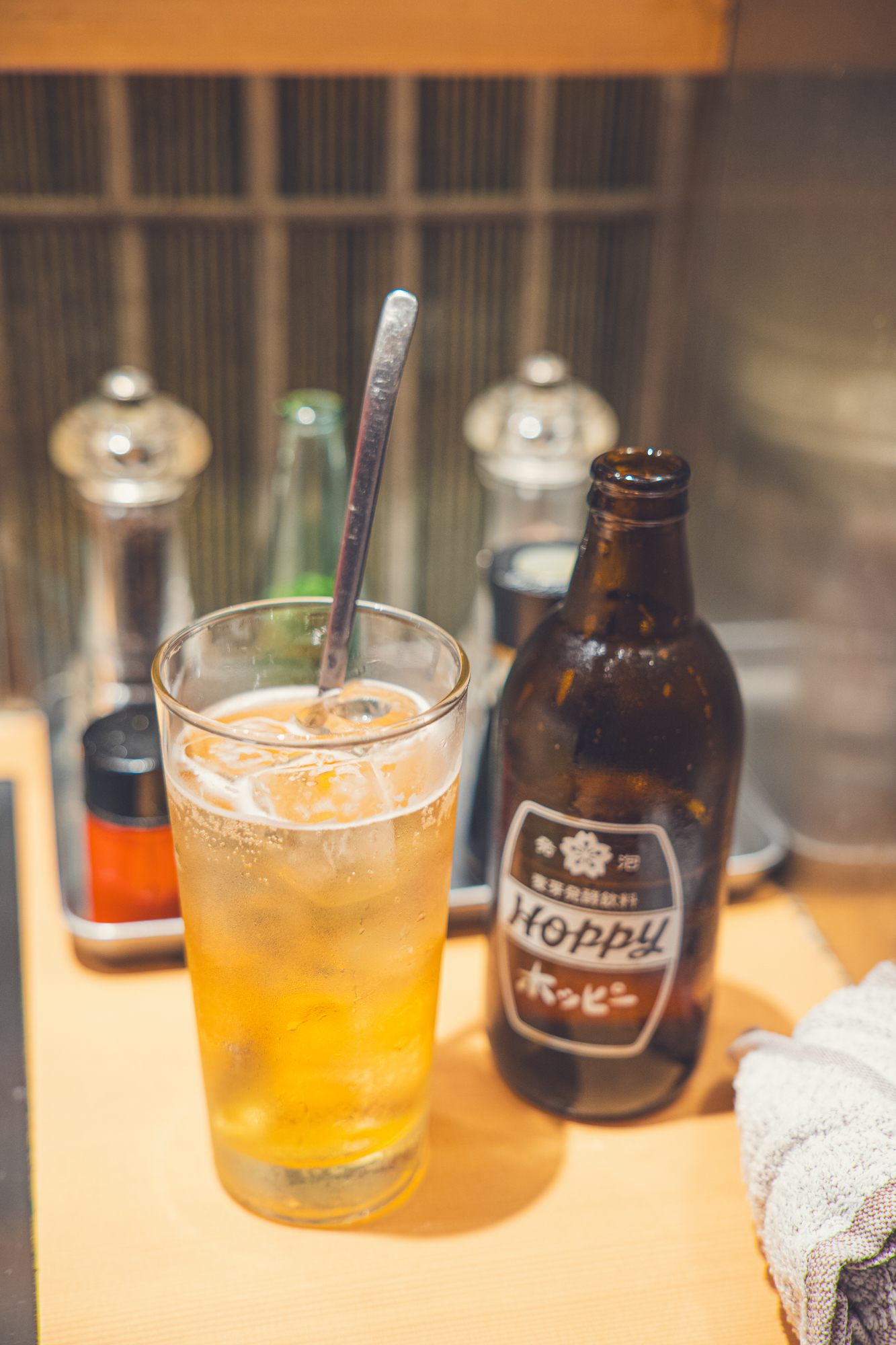 간단히 말하자면, 일본 자체 하이볼(?) 같은 개념이다. 오른쪽에 보이는 뽑힌 병에 있는 술과 탄산수를 섞어서 마시는 술이어서 알코올도수를 잘 조절해야 한다. 한국의 폭탄주랑 비슷하게 용량 잘못 조절하면 쓰... 진 않고 조금은 달달한 맛이 느껴지는 독특한 술이다. 한 번쯤은 먹어보는 것을 추천해 본다. ( 더듬더듬 일본어로 "홉삐"가 뭔가요? 물어봤다가 점원들도 질문받은 적이 없는지, "홉삐를 뭐라고 설명해야 할까나...?" 고민고민하고 말을 못 하길래 일단 달라고 했다..ㅋㅋ)