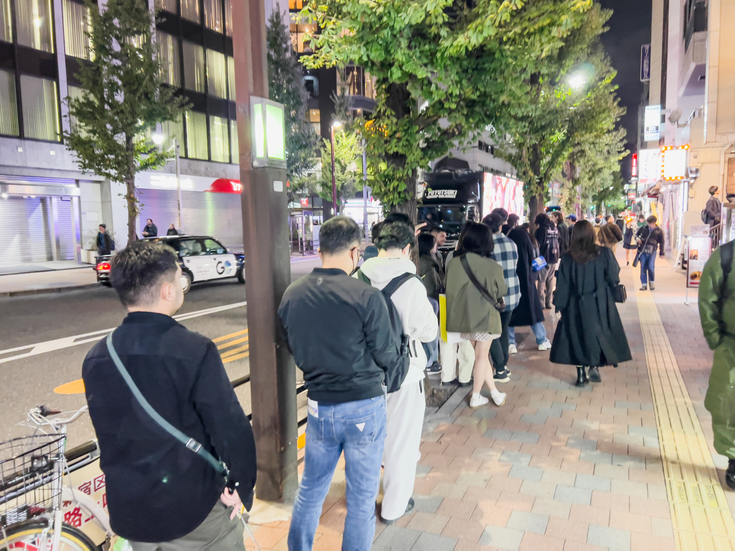 밖에 얼마나 더 대기줄이 있는지 알지 못했는데 바깥으로 나와보니 내가 대기를 시작했을 때 보다 훨씬 긴 줄이 생겨있었다. 아까 내가 대기할 때의 속도라면 맨 뒤에 있는 사람은 1시간 반 정도 대기해야 할 것 같은 길이였다...!! 그런데 대기하는 사람들 대부분은 관광객이 아닌 퇴근길에 들리는 일본인들밖에 없었다. 정말 현지인에게도 맛집이었던 것이다.