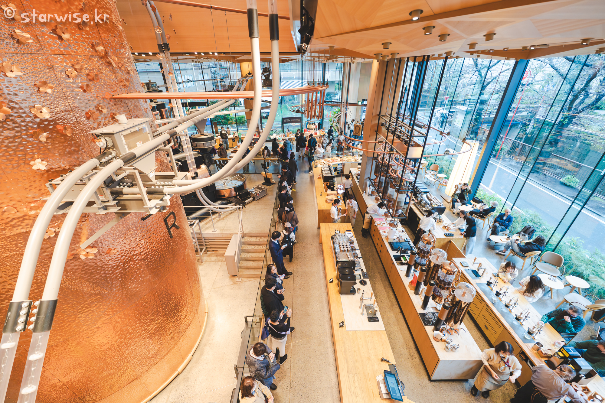 스타벅스 리저브 로스터리 도쿄는 스타벅스의 전 세계적인 커피 체험 공간 중 하나로서, 고객들에게 커피에 대한 새로운 경험을 제공하며 매장 내부는 커피 로스터링 공정을 직접 볼 수 있는 로스터리 공간, 특별한 커피 테이스팅을 할 수 있는 테이스팅 바, 그리고 특별한 메뉴와 함께 휴식을 취할 수 있는 카페 공간으로 나뉘어 있는 공간이다.