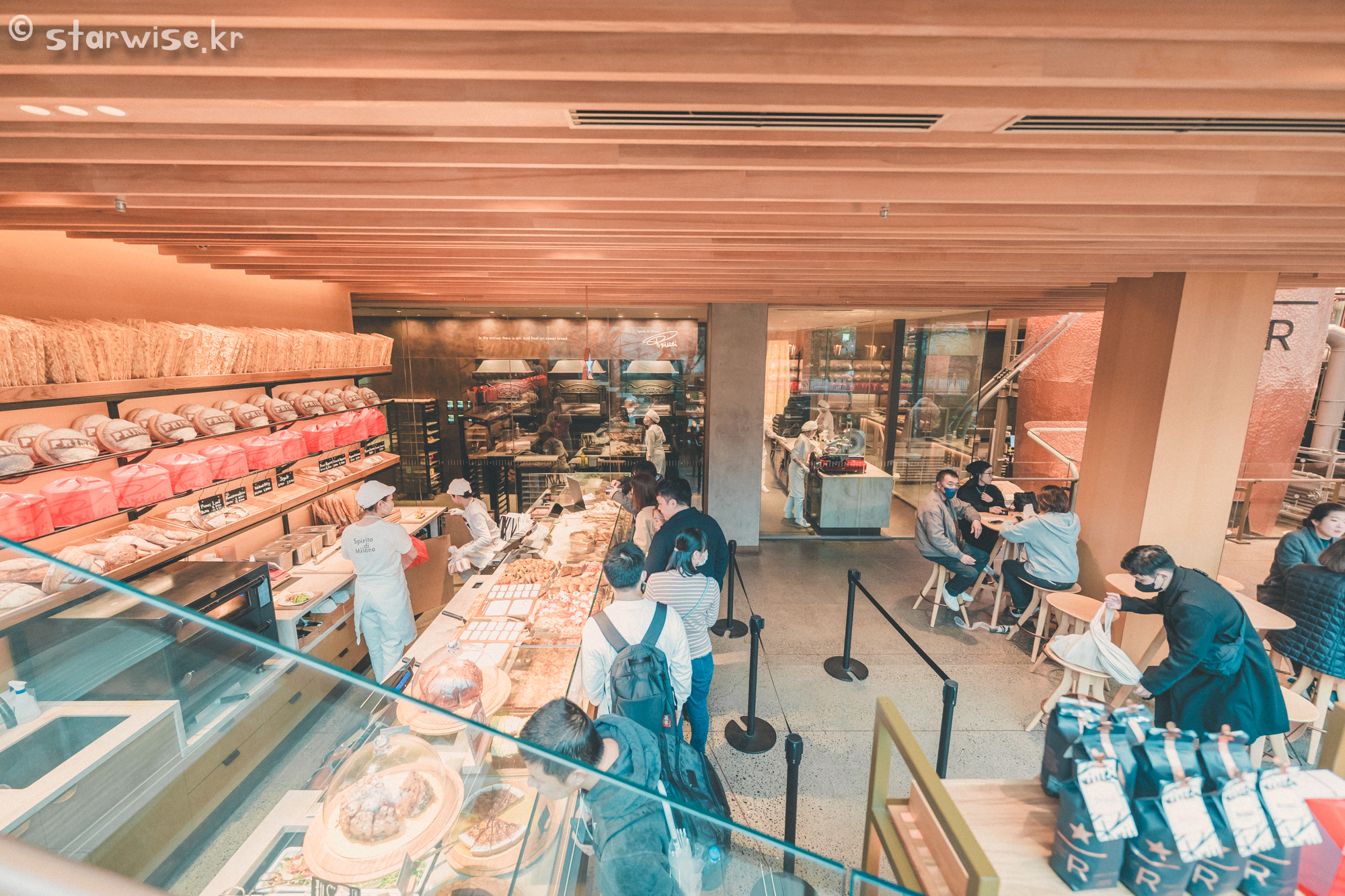 3층까지 있는 거대한 이 건물은 하나의 예술품이자, 문화공간 그리고 차를 달여마시고 맛난 디저트도 만나볼 수 있는 종합문화 공간이다. 단순한 카페가 아닌 것이다! 그래서 전 세계에서 사람들이 몰려들기 때문에 오픈런을 하는 사람들도 종종 볼 수 있다. 필자가 방문한 날에 비가 추적추적 내리고 있었고 대략 9시 반쯤 방문했는데 다행히도 입구부터 대기는 아지 않고 바로 입장할 수 있었다. 그리고 빠르게 앉을 자리부터 수색해서 짐을 놓고 그 다음에 주문을 하러 이동했다. (참고로 스타벅스는 음료주문하지 않아도 매장이용 + 화장실 이용할 수 있다! 전세계 방침)