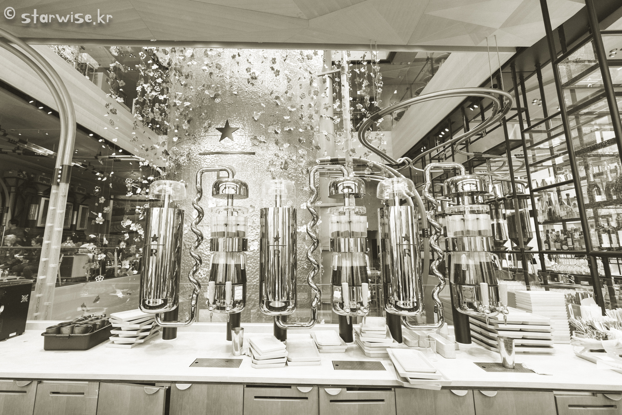 스타벅스는 몇 가지 차별점을 둔 매장을 운영 중이다. 그냥 '스타벅스'와 '스타벅스 리저브' 그리고 '스타벅스 리저브 로스터리' 3가지 운영매장이 있는데 리저브 매장까지는 한국에도 워낙 많기 때문에 방문해 보면 일반 매장과 다르게 '커피 바리스타'가 다양한 증류법을 이용해서 커피를 제조하는 것을 볼 수 있다는 것을 알 수 있다.