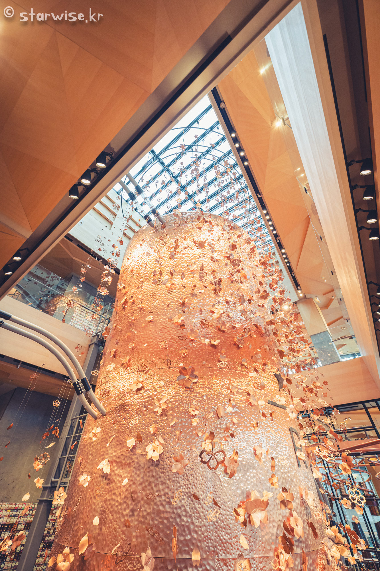 구리로 만들어진 중앙탑이다. 그리고 주변에 싸라기(?)같이 보이는 장식물은 벚꽃을 표현했다고 한다.