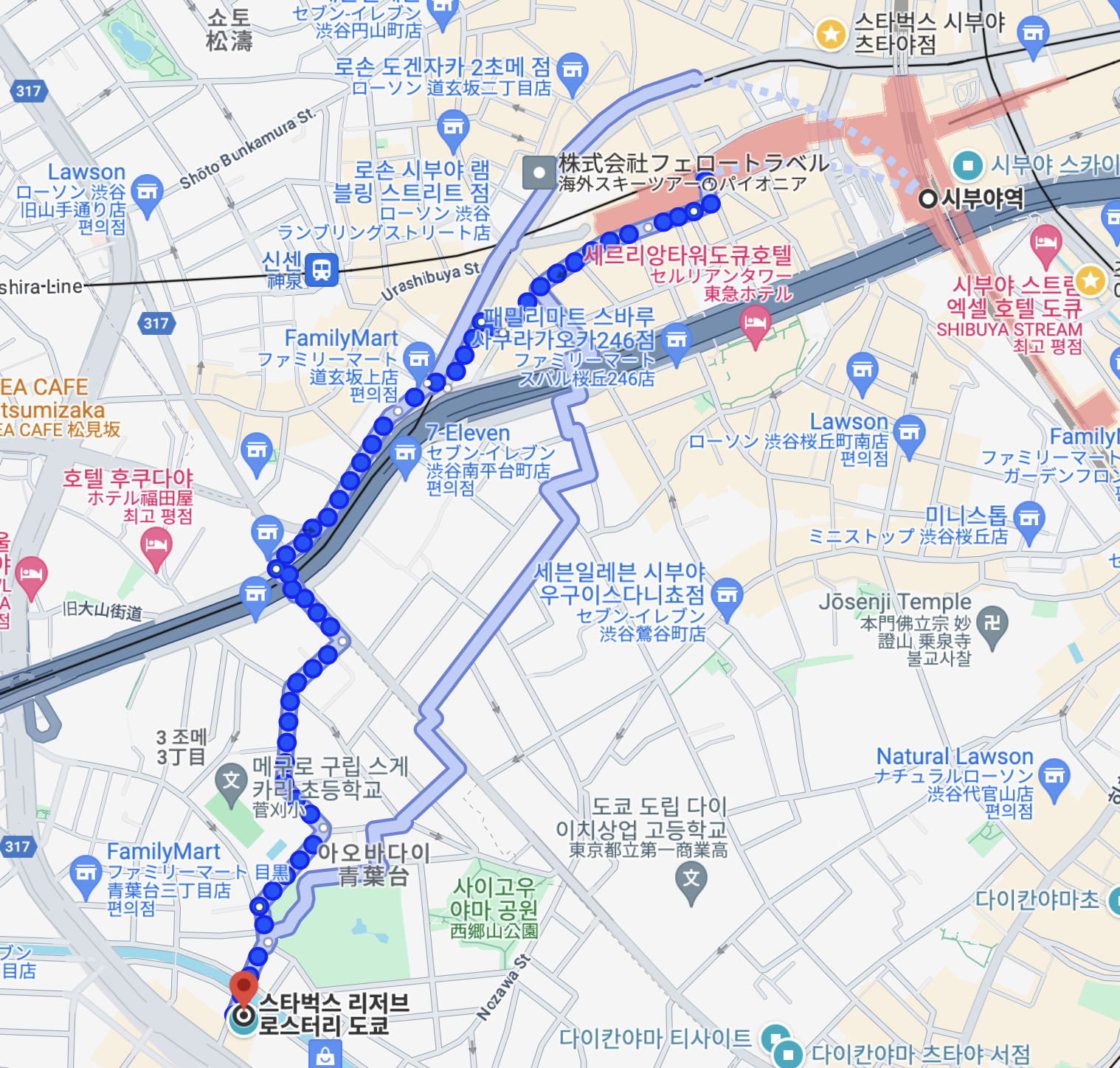 시부야역에서 걸어가도 20분이면 가기 때문에 동네 골목길 산책하면서 간다는 생각으로 이동해도 충분하다.