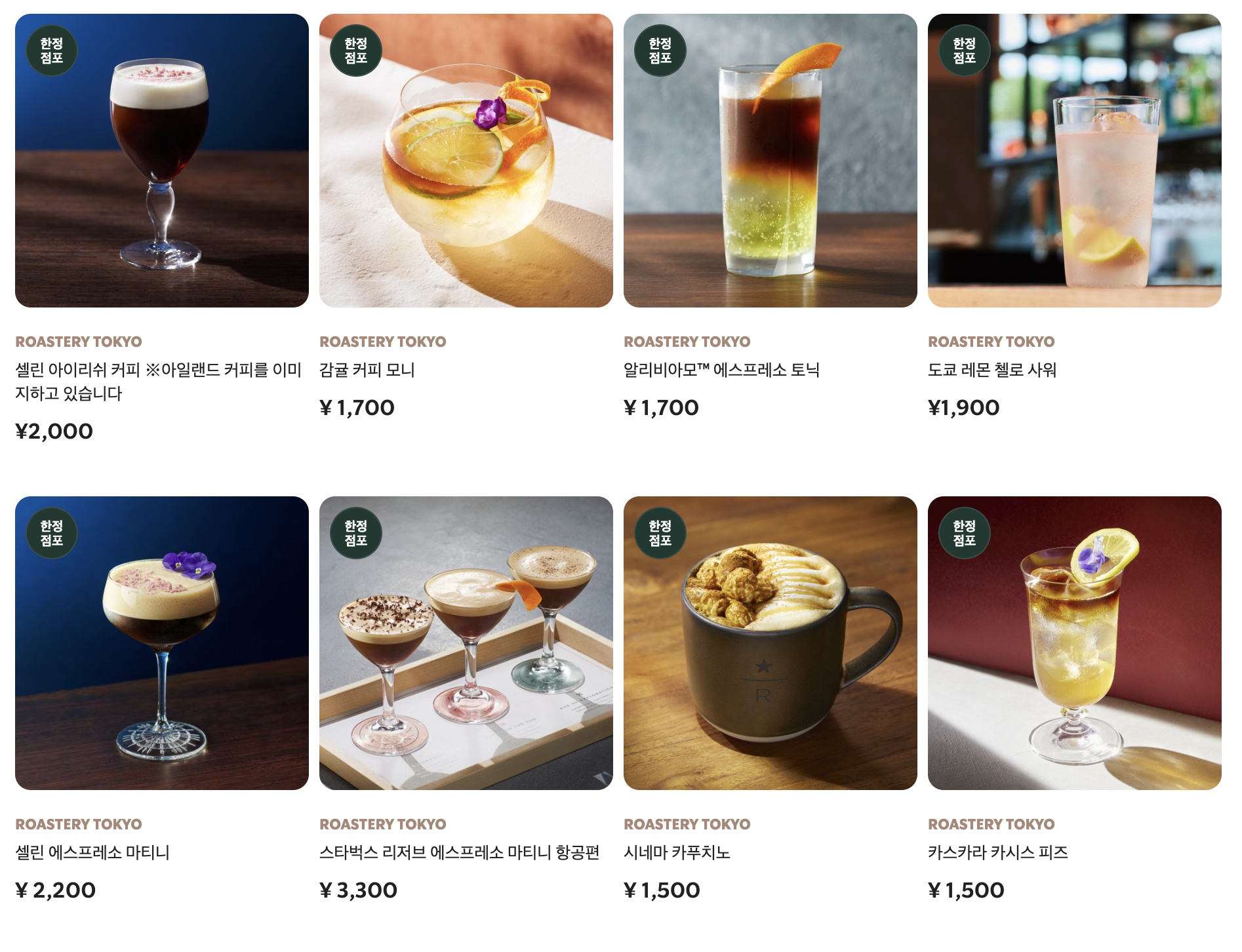 출처:: menu.starbucks.co.jp/search?purchase_methods=RESERVE_ROASTERY_TOKYO