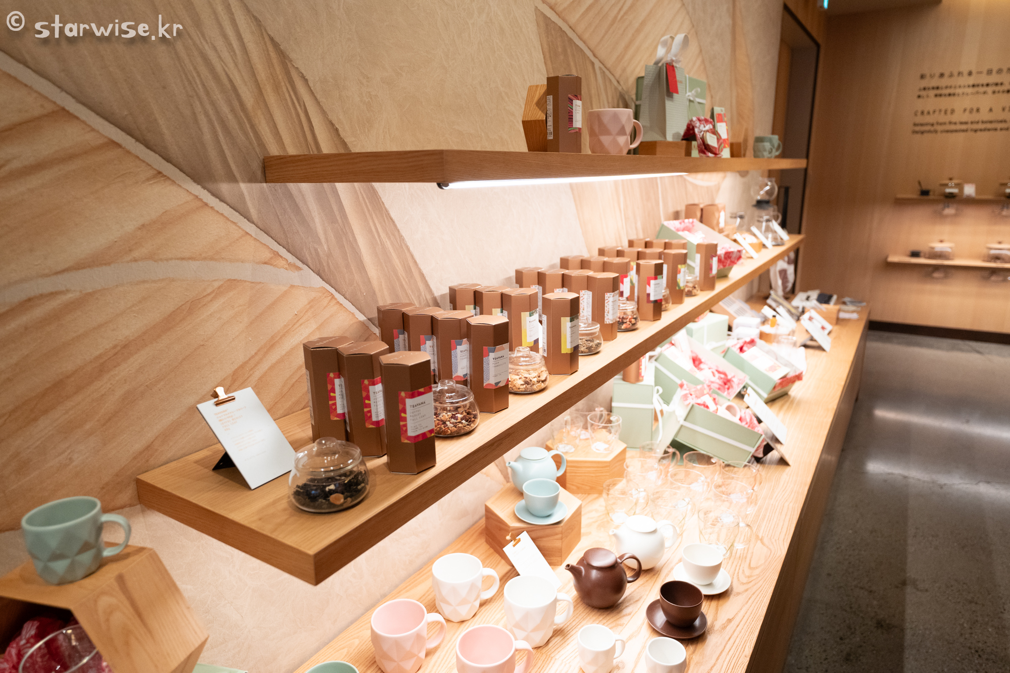 매장의 2층은 일본 답게 "차(茶)"에 대한 깊은 명상과 함께 각 찻잎에 대한 설명을 들을 수 있는 차 바리스타가 상주하고 있으며 찻잎에 대한 설명. 그리고 블랜딩 한 찻잎 꾸러미를 직접 냄새를 맡아보고 그람 단위로 구매할 수 있는 공간이다. 물론, 함께하면 더욱 좋은 디저트도 마련되어 있어 달콤함을 함께 느껴볼 수 있다. 일본어만 잘했으면 저 공간에 앉아서 일본의 차 문화 그리고 추천할만한 블랜딩과 성분에 대해 알아보고 싶었다. 다음번에는 꼭 일본어 공부해서 오리라..!!