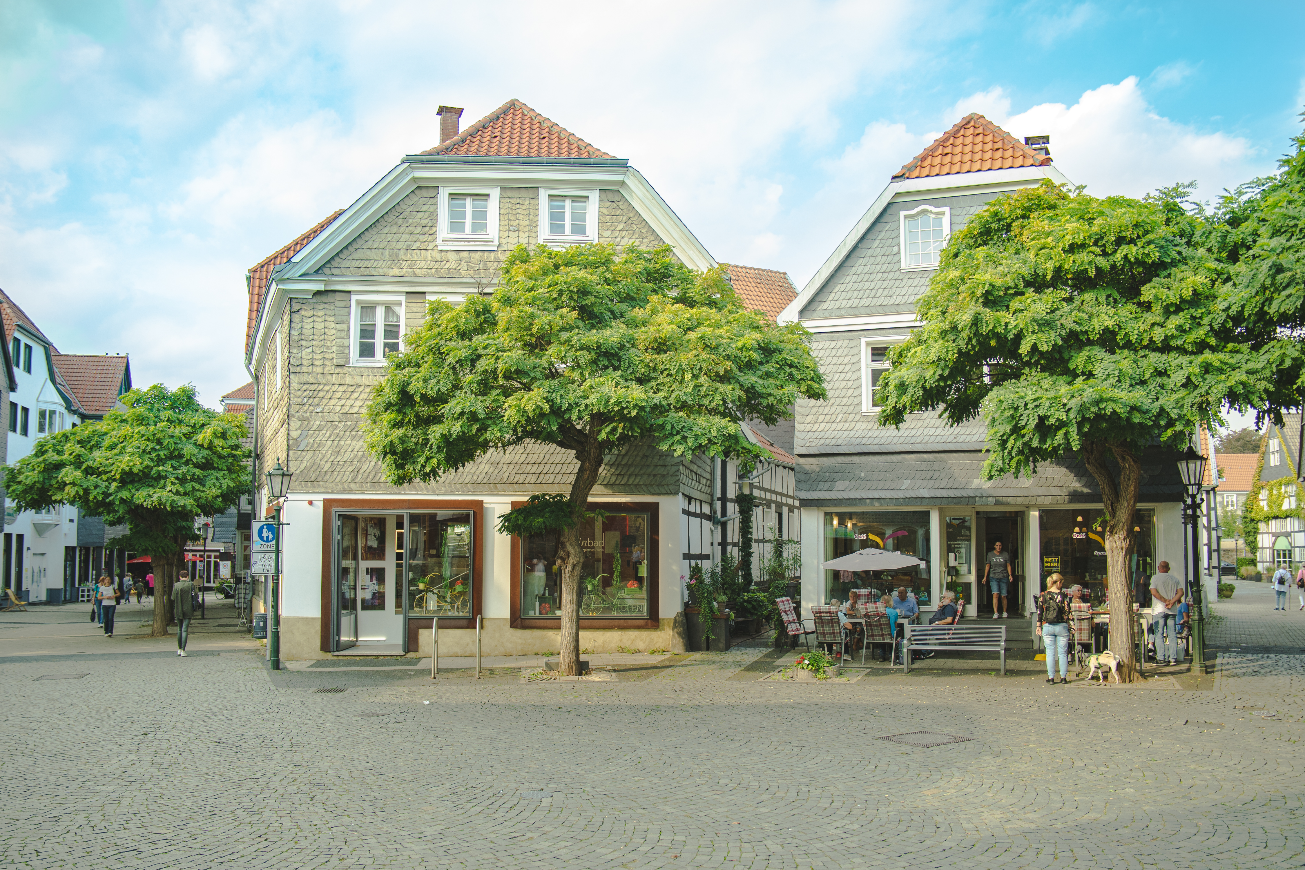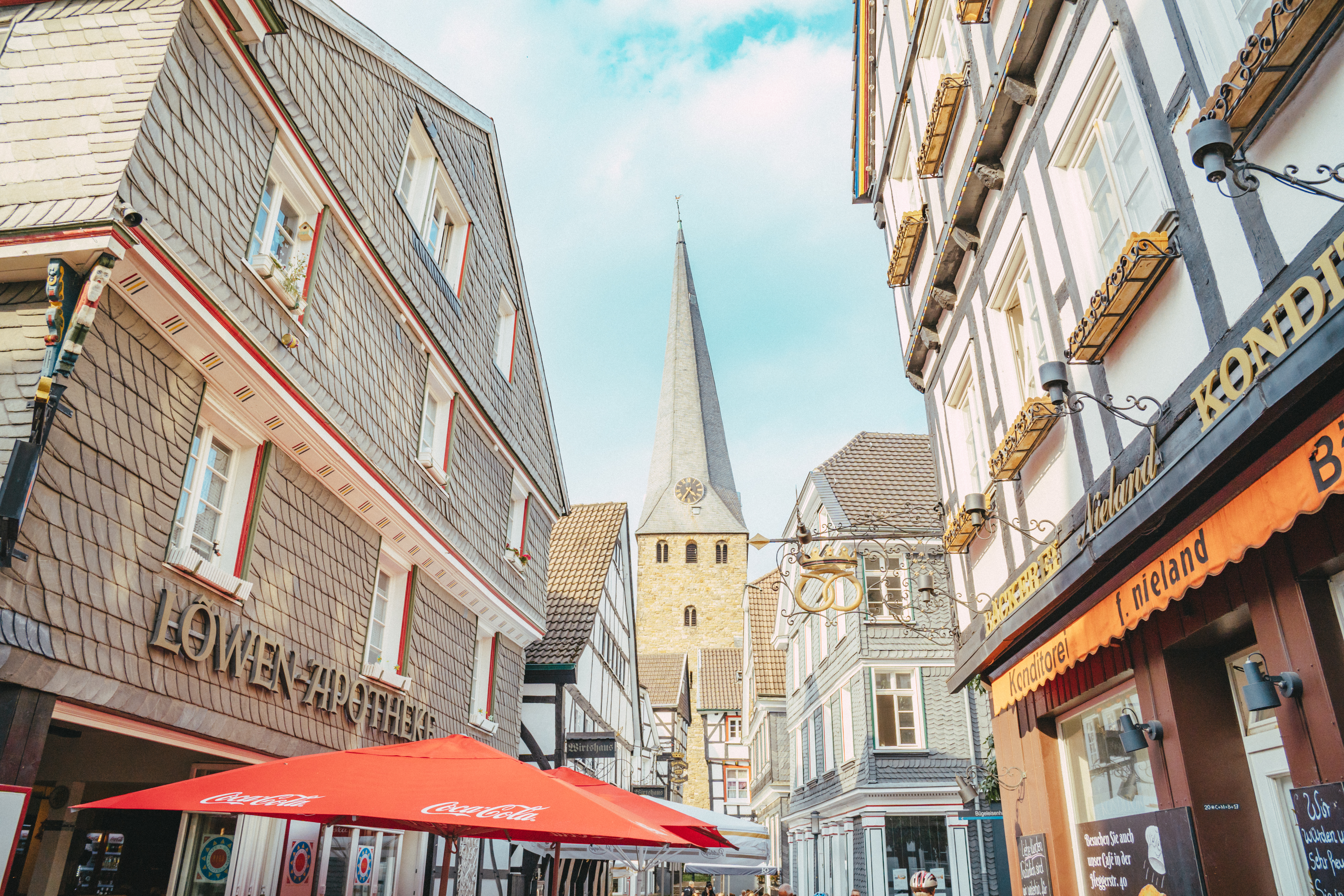 지하철 역으로 보이는 곳 옆에 있는 공영주차장에 주차를 하고 구시가지를 향해 걸어가는 길, 마치 숨겨진 도시를 찾는 듯한 느낌의 골목길이 눈 앞에 펼쳐진다. 마치, 높은 나무들이 있는 미로로 향해 걸어가는 길... 무선 이어폰을 꺼내 감성적인 노래를 들으며 조금은 천천히 발걸음을 옮겨본다. 마침 평일이라 사람들도 많이없었다. 정말 독일인들만 아는 곳이여서인지, 아니면 조금은 수수하기 때문에 유명하지 않아서인지는 모르겠지만 관광객은 전혀 없었다. 그래서 정말로 독일에 와 있다는 생각이들기 시작했다.