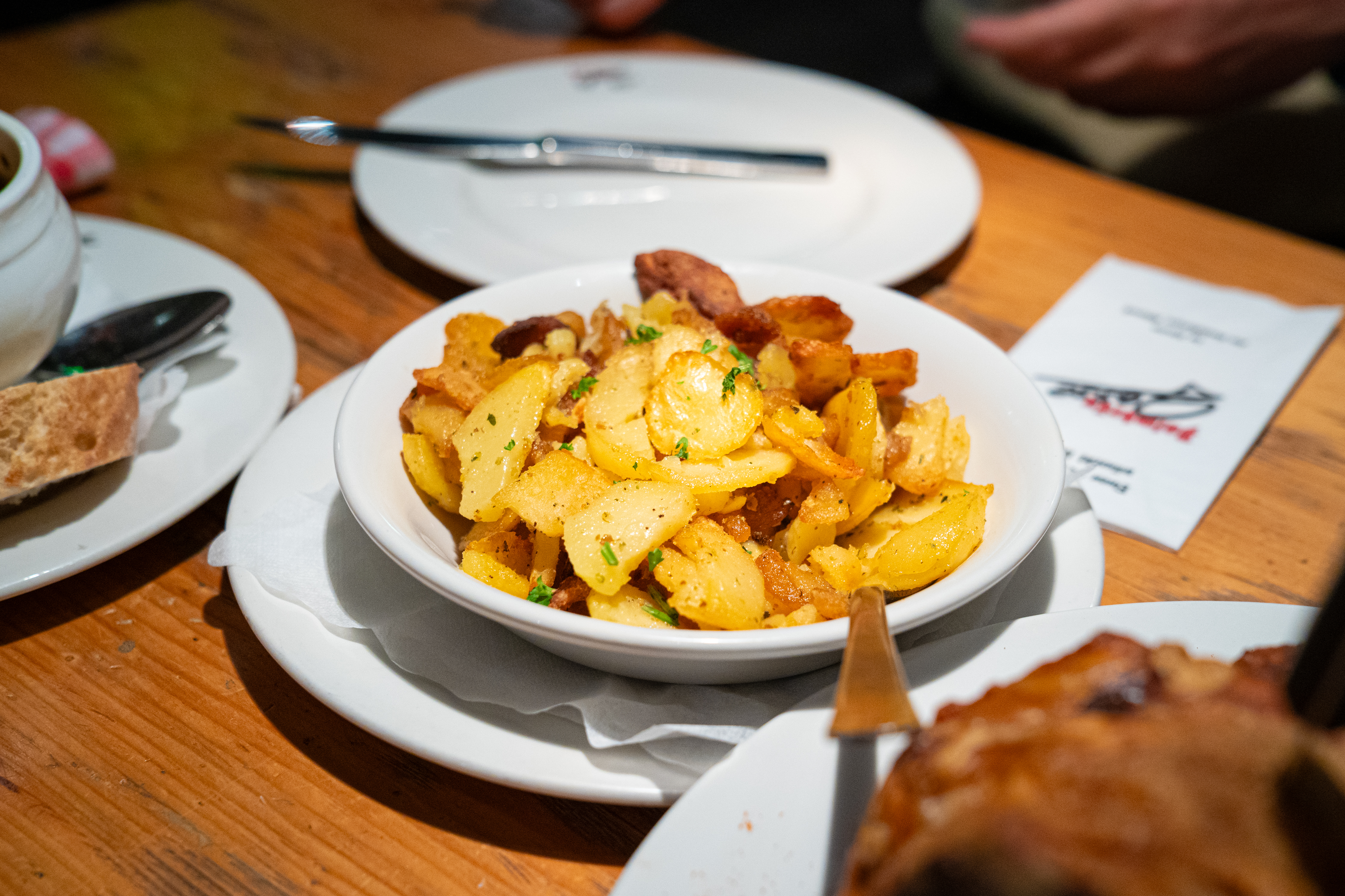 단백질만 먹을 수는 없으니 감자튀김과 야채수프도 시켜서 먹었는데, 짠맛의 슈바인스학세를 어느 정도는 중화시켜 주는 음식으로 기억한다. 시그니쳐 음식이 아니기 때문에 설명은 생략한다.