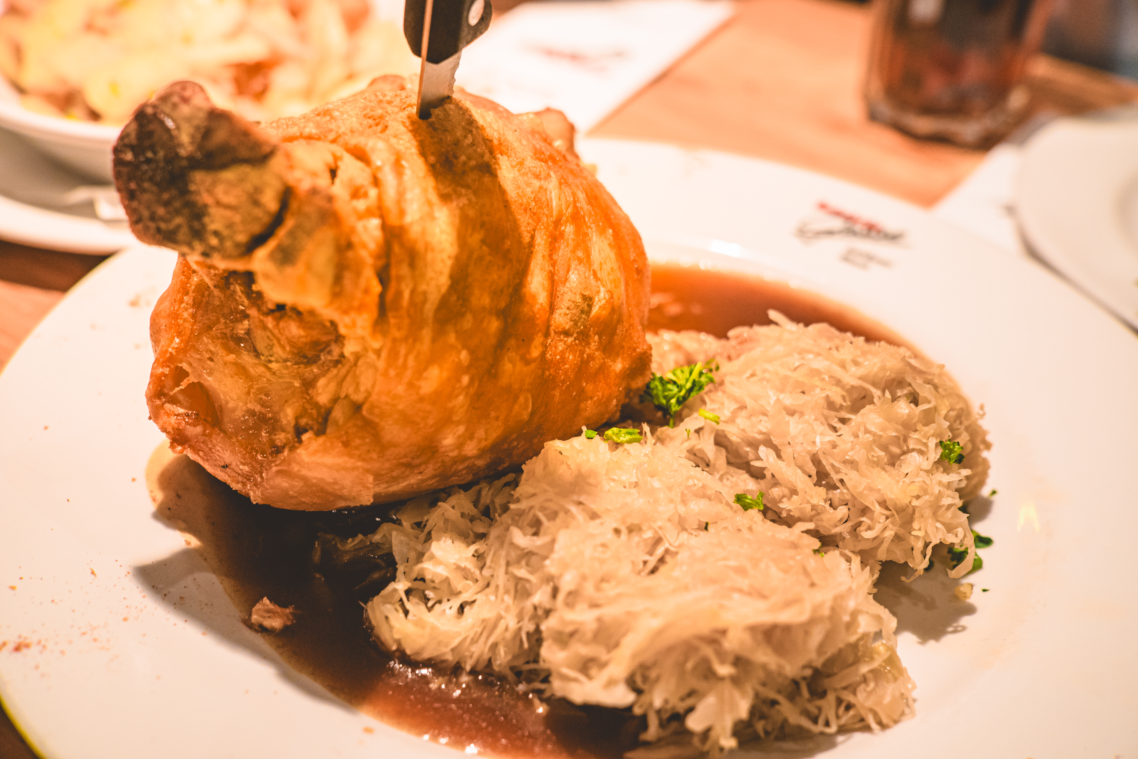 오늘의 하이라이트! 슈바이스학세 ( Crispy grilled pork knuckle | Knusprig gegrillte Schweinshaxe )이다.