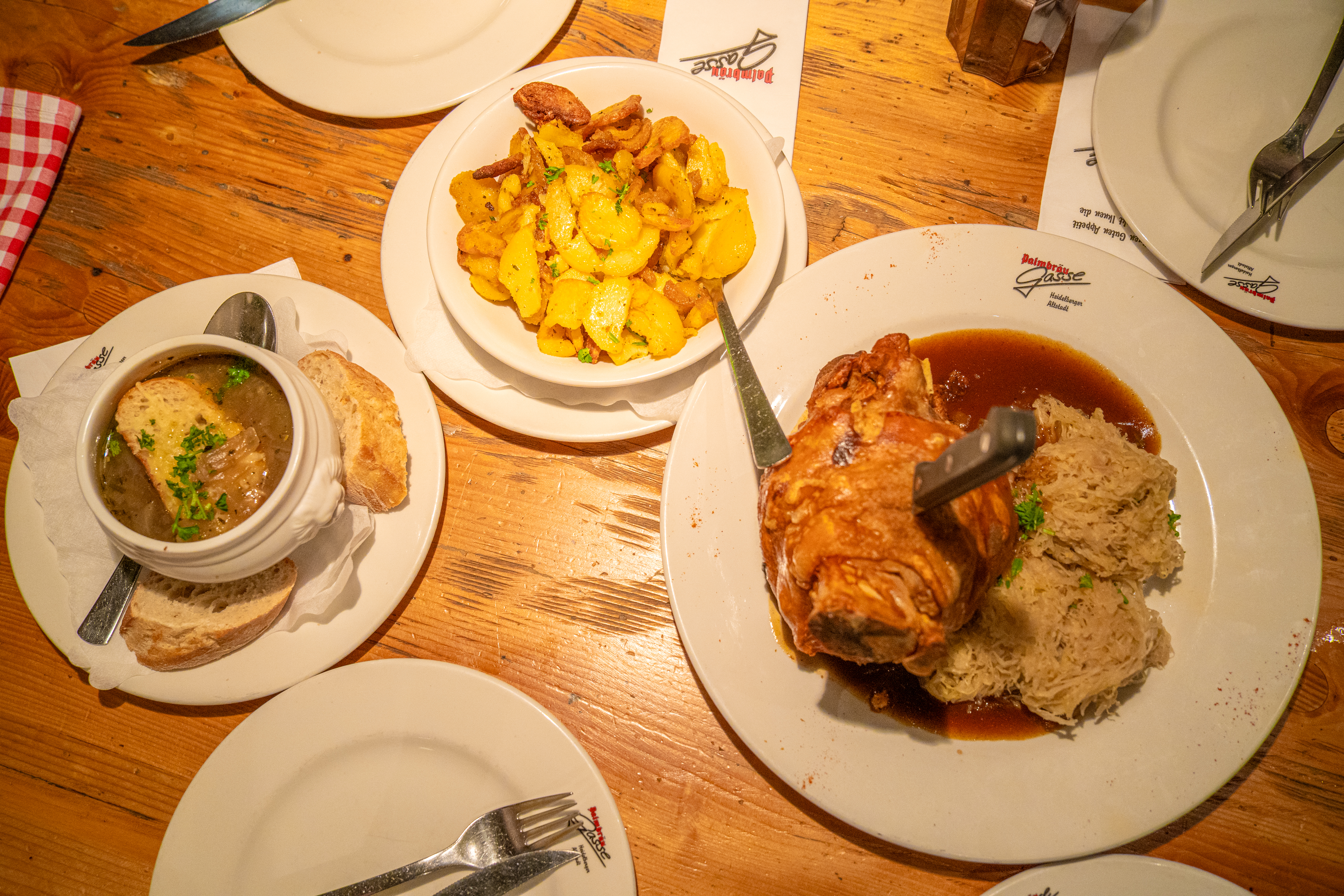 독일뿐만 아니라 유럽 전체 식당에서 유일하게 불편했던 점은, 웨이터를 부를 수 없다는 것! 호출하면 예의 없는 것으로 여겨지기 때문에 테이블 담당한 웨이터가 지나갈 때 눈을 맞추고 손을 들어야 한다! 눈치 싸움이다...ㅋㅋ 웨이터가 바빠서 눈 맞추지 못하면 바라볼 때까지 무한대기... 바쁜 시간대에 가서 그런지 먹고 나서 계산할 때까지 10분은 걸린 것 같다..! 그만큼 현지인 맛집이라는 증거이다. 하이델베르크 여행에서 추천한다.