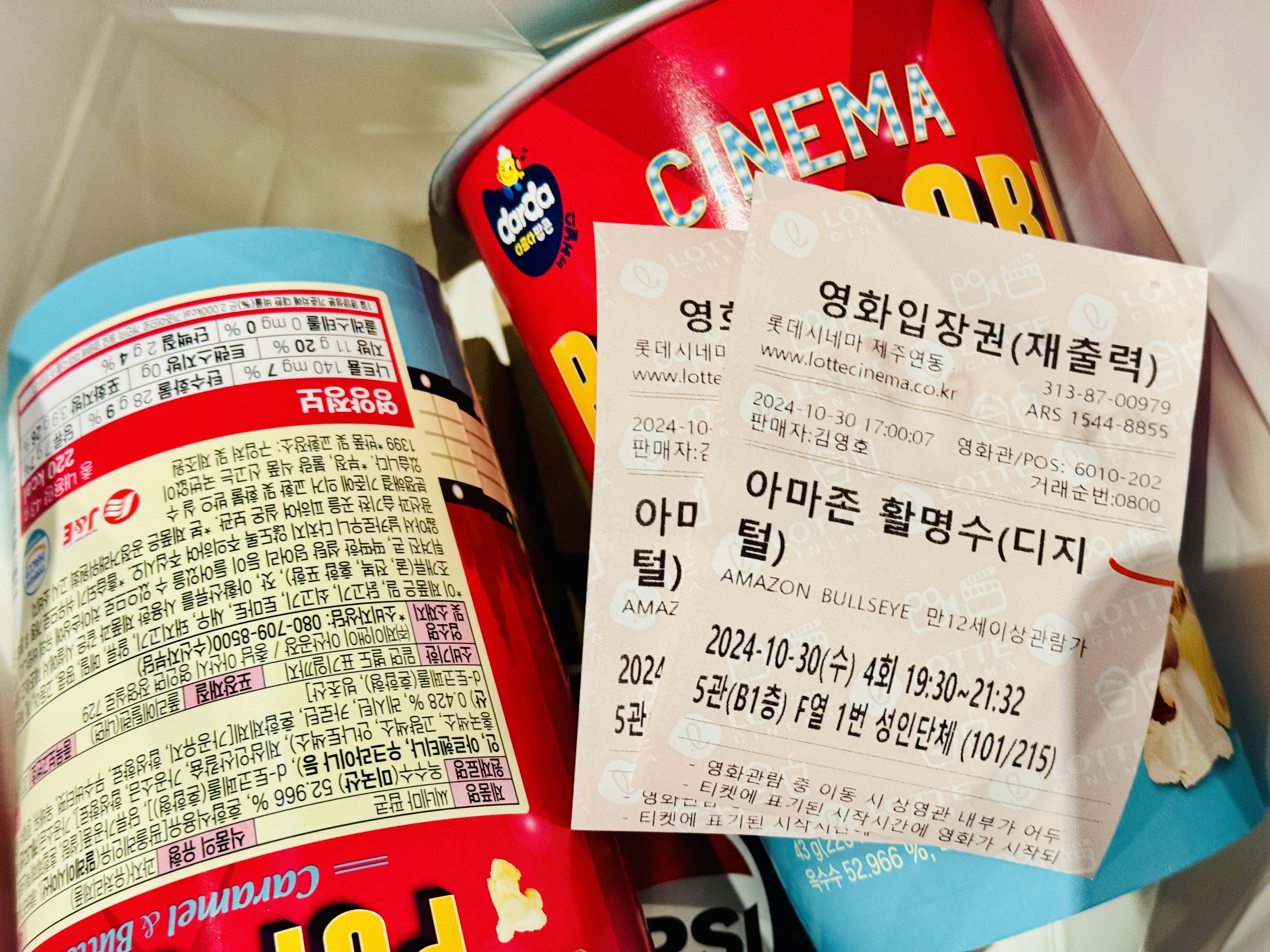 선물은 생각도 못했는데 회사측에서 팝콤과 핫도그, 콜라까지 담겨있는 먹을거리 세트를 시켜줘서 따로 구매하지 않고 바로 들어갈 수 있었다는 점은 너무나 좋았다. 이런 소소한 복지 때문에 사표를 주머니 속에 넣고 꺼내질 않게 되는 것 같다...ㅎㅎㅎㅎ