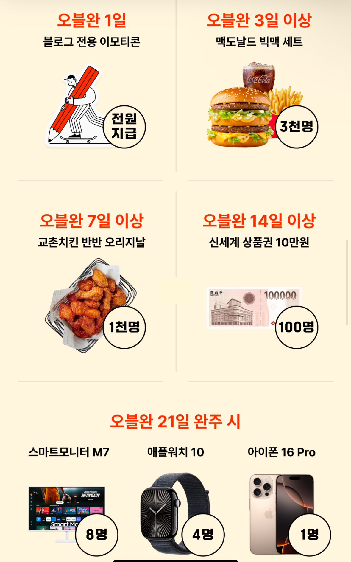 바로바로 오블완 이라는 챌린지 프로그램 인데요, 쓰는 글마다 더 좋은 상품들 얻을 확률이 높아요