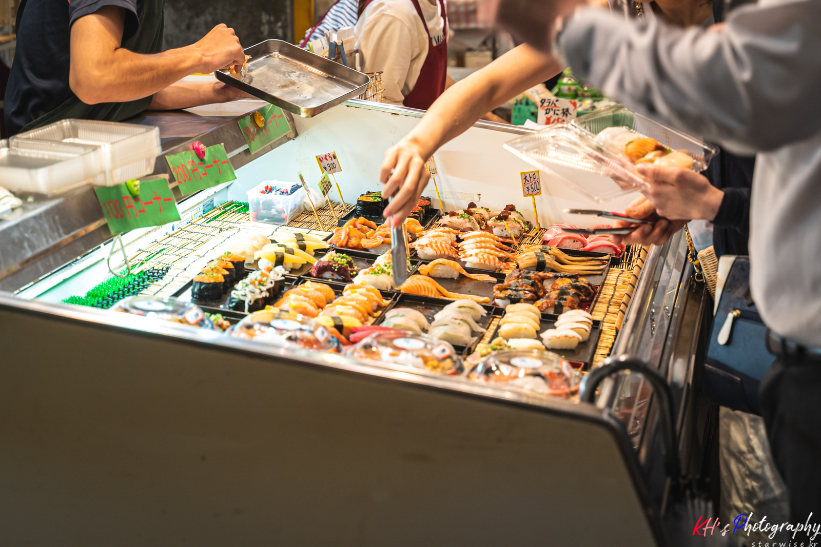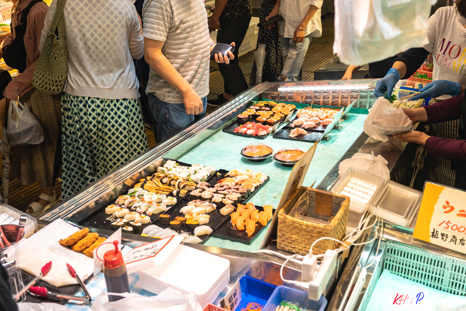 이 곳에 방문한 이유는...!!! 시장 안에서 골라먹을 수 있는 초밥시장이 열린다고 해서이다..!! 가격도 나름 저렴하게 음료와 함께 먹을 수 있다는 여행책의 글귀를 보고 방문했는데, 역시나... 이곳은 여행객들을 위한 시장이라기보단 일본인들... 동네주민들을 위한 시장이었다. 나름 일찍 도착했다고 생각했는데도 불구하고 시장 안은 이미 사람들로 북적이고 있었다.