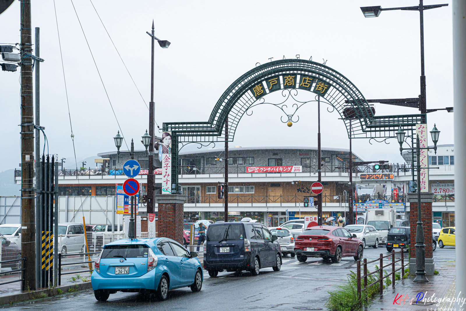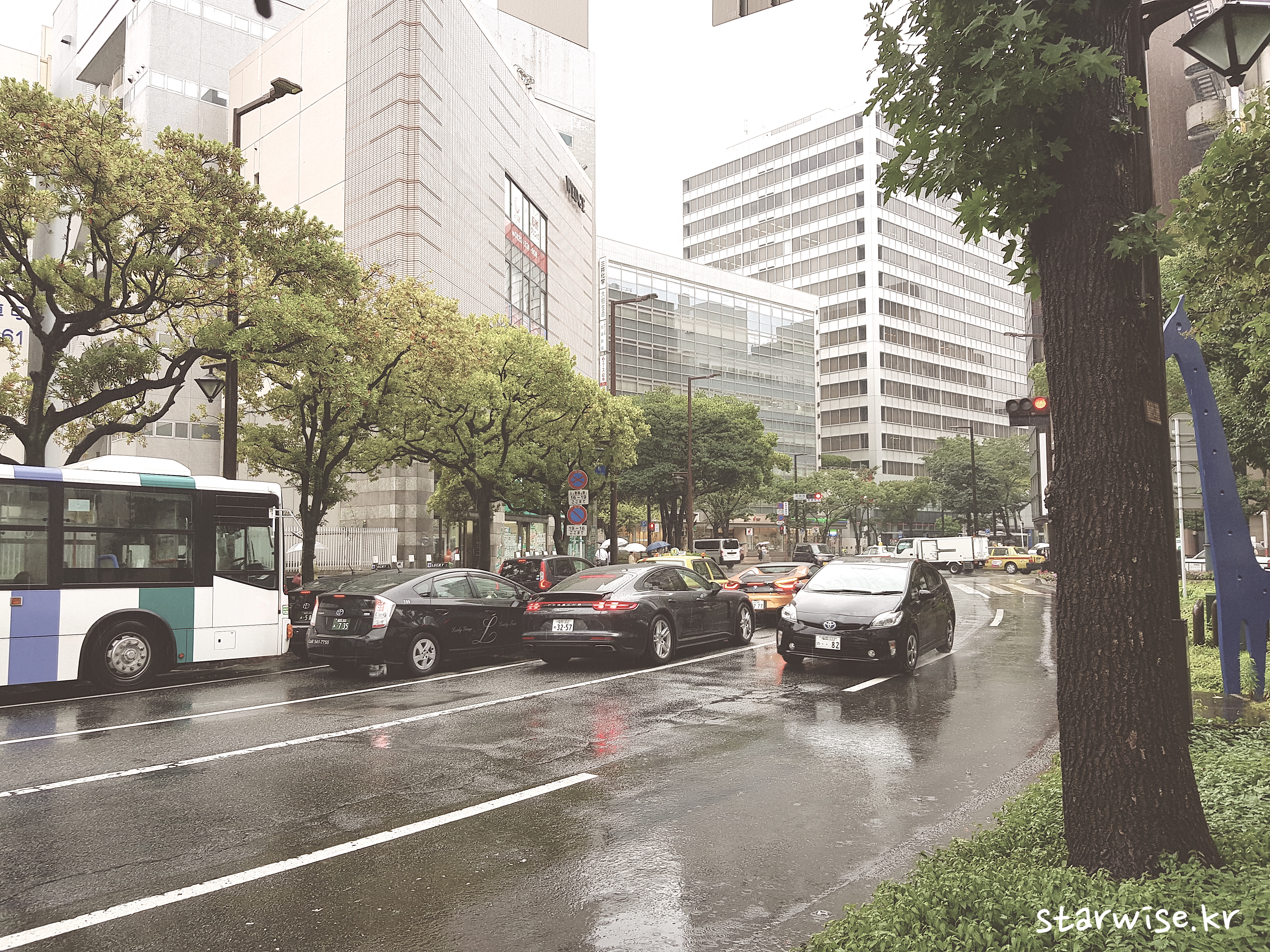 시모노세키역에 도착! 첫 목적지인 가라토 수산시장을 향해서 걸어가본다. 2가지 옵션이 있었다. 첫째, 버스를 탄다. 둘째, 걸어간다...그런데 걸어가는 것과 버스 타는게 시간이 10분밖에 차이가 나지 않는다! 심지어 비도 이슬비정도만 내릴 뿐이어서 나름 걸을만 하다는 생각에 동네 구경도 할겸 천천히 걸어갔다.