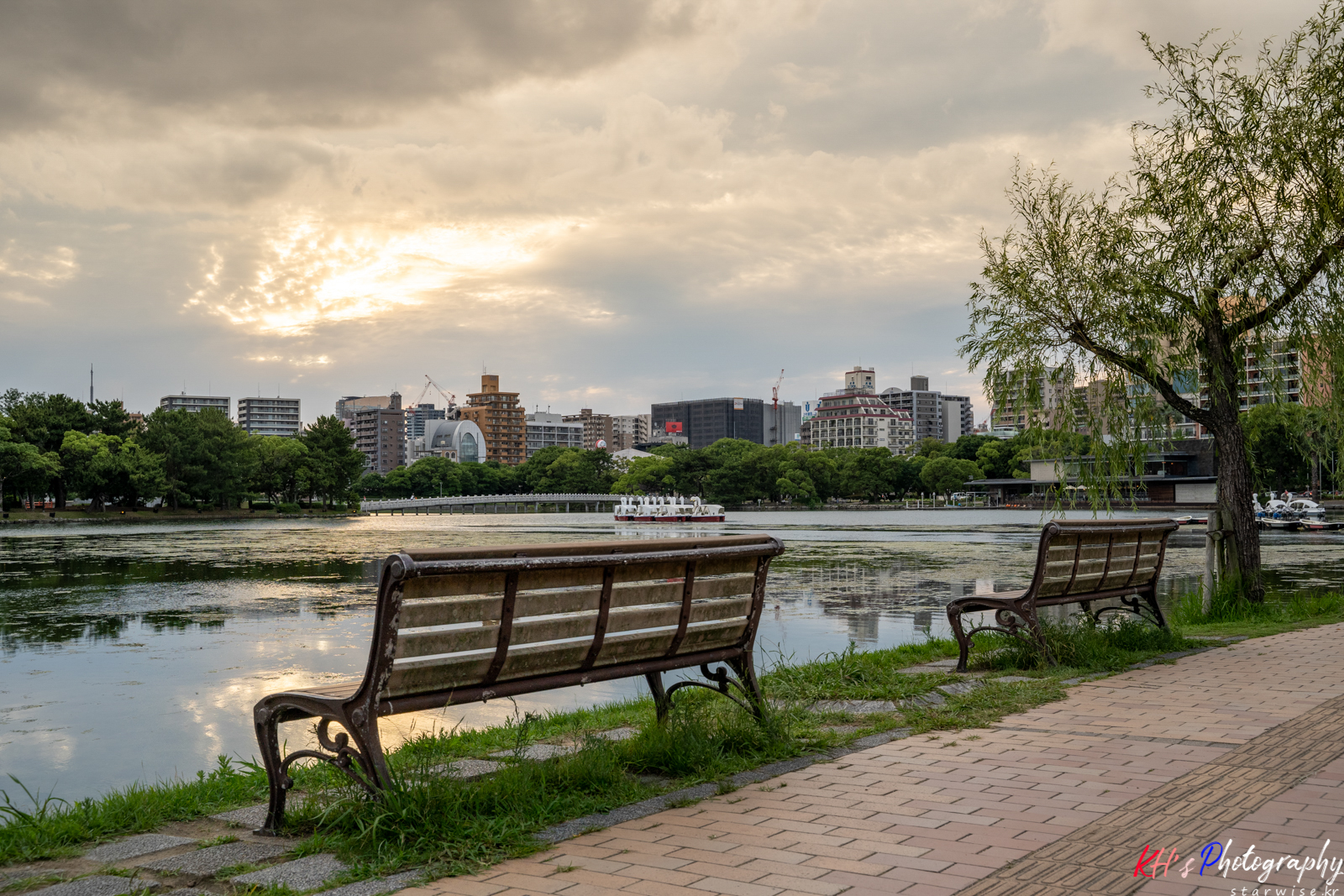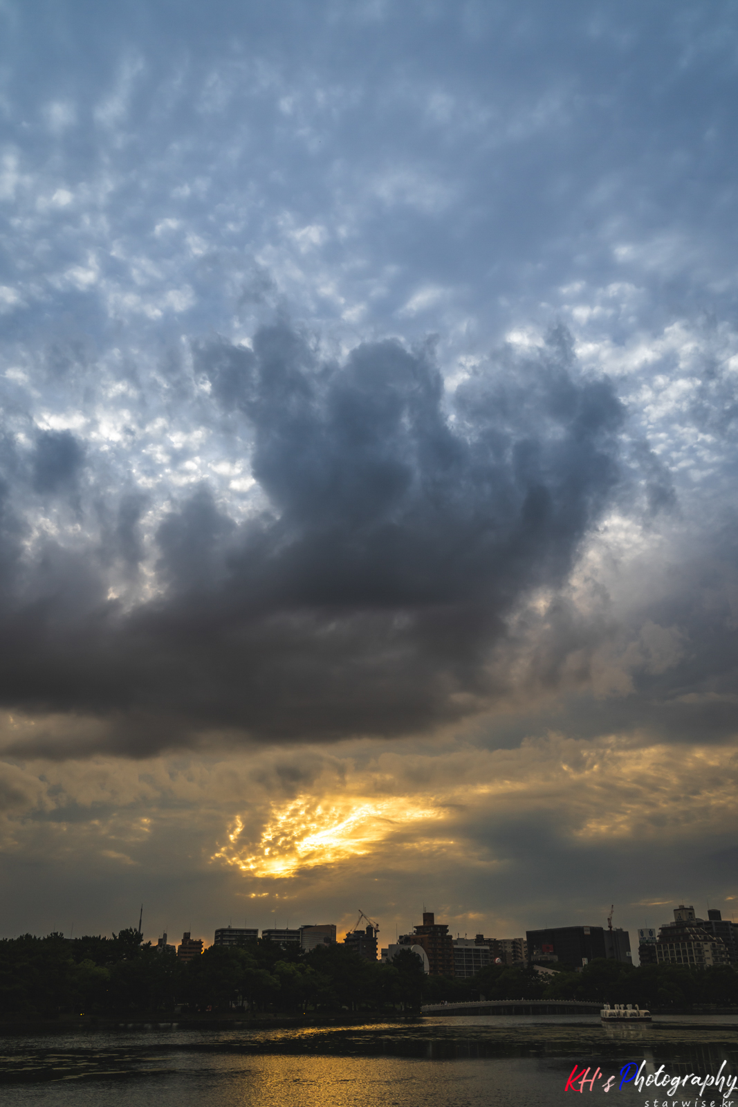 후쿠오카 시내, 그리고 숙소를 향해 쭈욱 걸어본다. 그리고 중간에 만난 오호리 공원, 하늘엔 구름이 많았지만 노을의 빛을 막진 못했다. 구름 사이로 퍼져 나오는 노란색의 햇빛, 그리고 그 햇빛을 거울처럼 담아내는 호수의 반영.. 살아있는 그림을 보고 있는 거 같은 착각이 들었던 순간이다. 조용히 걸어보며 계속 사진으로 어떻게 담으면 멋지게 나올까를 고민하며 걷다가 찍고, 걷다가 찍고.. 여러장의 사진을 남긴 것 같다.