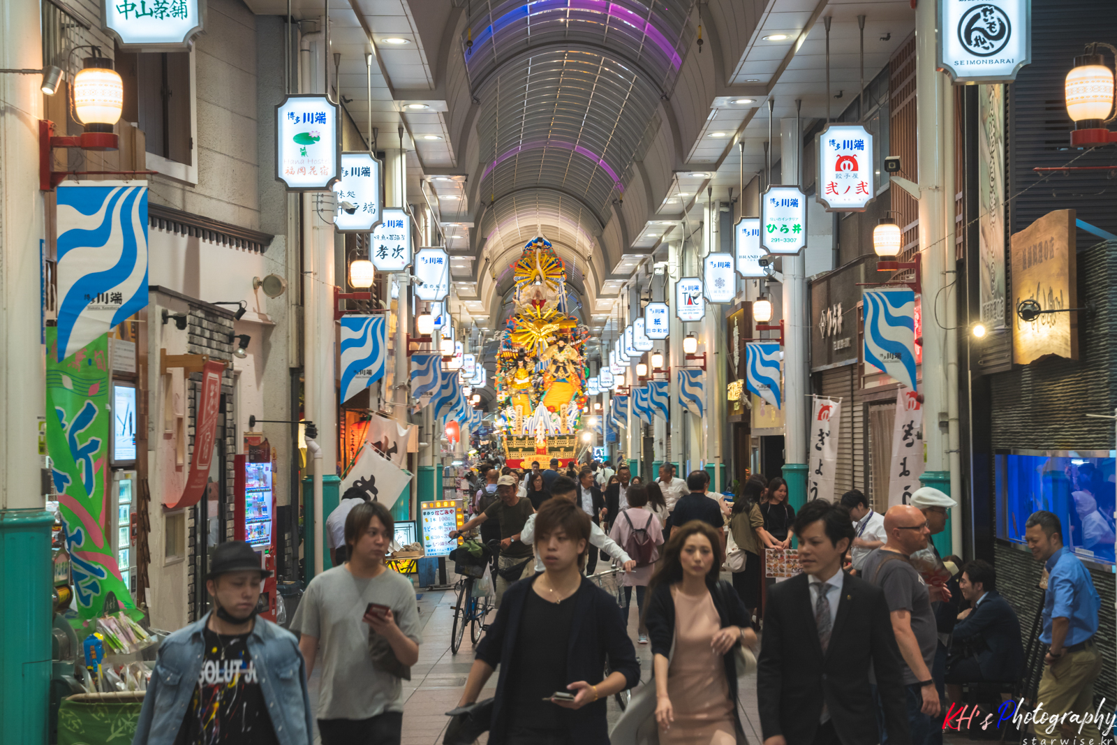 이곳, 후쿠오카는 이때 마츠리..그러니까 축제기간이었다. 하카타 기온 야마카사(博多祇園山笠)라는 축제가 열리는 기간이었는데, 그 축제를 기념하기 위해서인지 시내 곳곳에는 엄청나게 큰 기마들이 화려한 장식과 함께 전시가 되어 있었고 시내를 걷는 사람들의 얼굴엔 웃음기가 가득해보였다. 일본에는 이런 축제들이 많이 보여서 좋은거 같다. 오래된 전통 축제가 꾸준히 이어져오는것, 그리고 그 축제가 단순히 관광객을 끌어모으기 위해서 만들어지고 조직되어지는 것이 아니라 진짜로 마을 주민들이 스스로 흥겨워지기 위해서 즐기면서 진행하는 축제...! 지역적 특색이 보이는 축제들이 한국에서도 많아졌으면 하는 바람이다.
