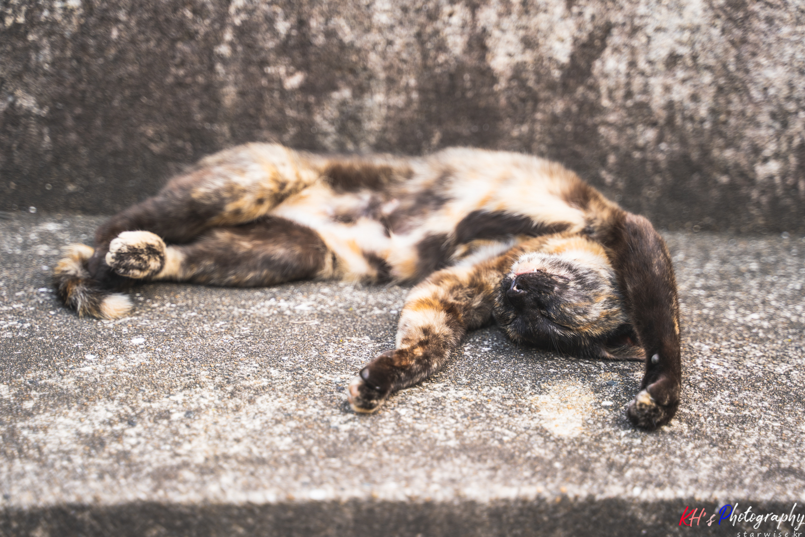 신사를 보고 언덕을 내려와보니 계단 옆, 고양이가 낮잠을 자고 있다. 그런데 포즈가 아주 희한하다. 너무나도 편해서일까 저 자세가 아니면 더위가 가시지 않아서일까... 그냥 지나치려다가 특이한 포즈의 고양이 덕에 웃음이 풋! 하고 났다. 안녕 냥이야?