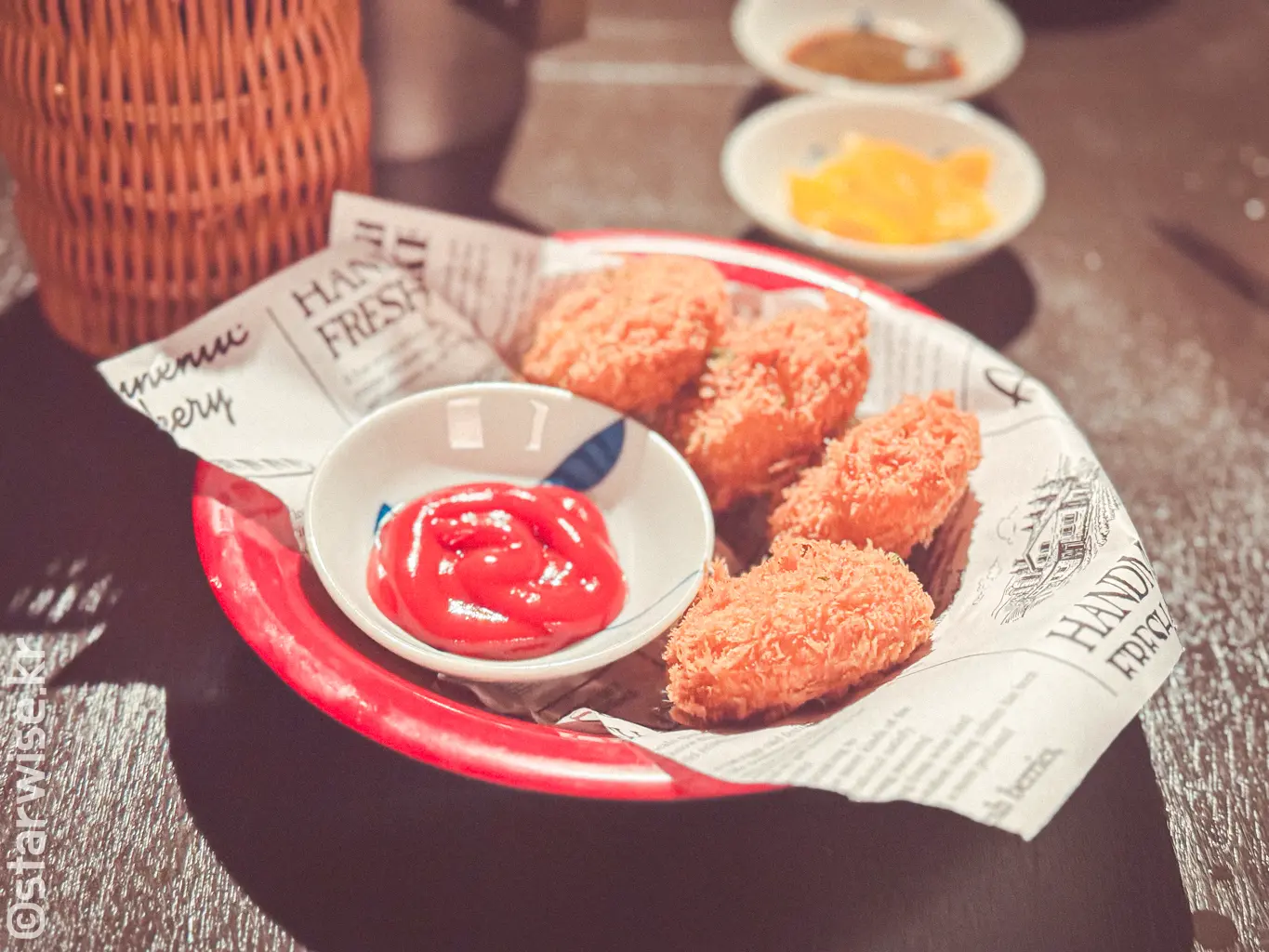 입 안이 무언가 심심해서 추가로 고로케를 주문해 보았다. 이미 만들어 놓은 것이 아닌, 지금 막 기름 튀김기에서 꺼낸듯한 바삭함과 한 땀 한 땀 정성 들여 만들었을 것 같은 치즈감자의 부드러우면서도 담백한 속살의 조화가 환상적이다.