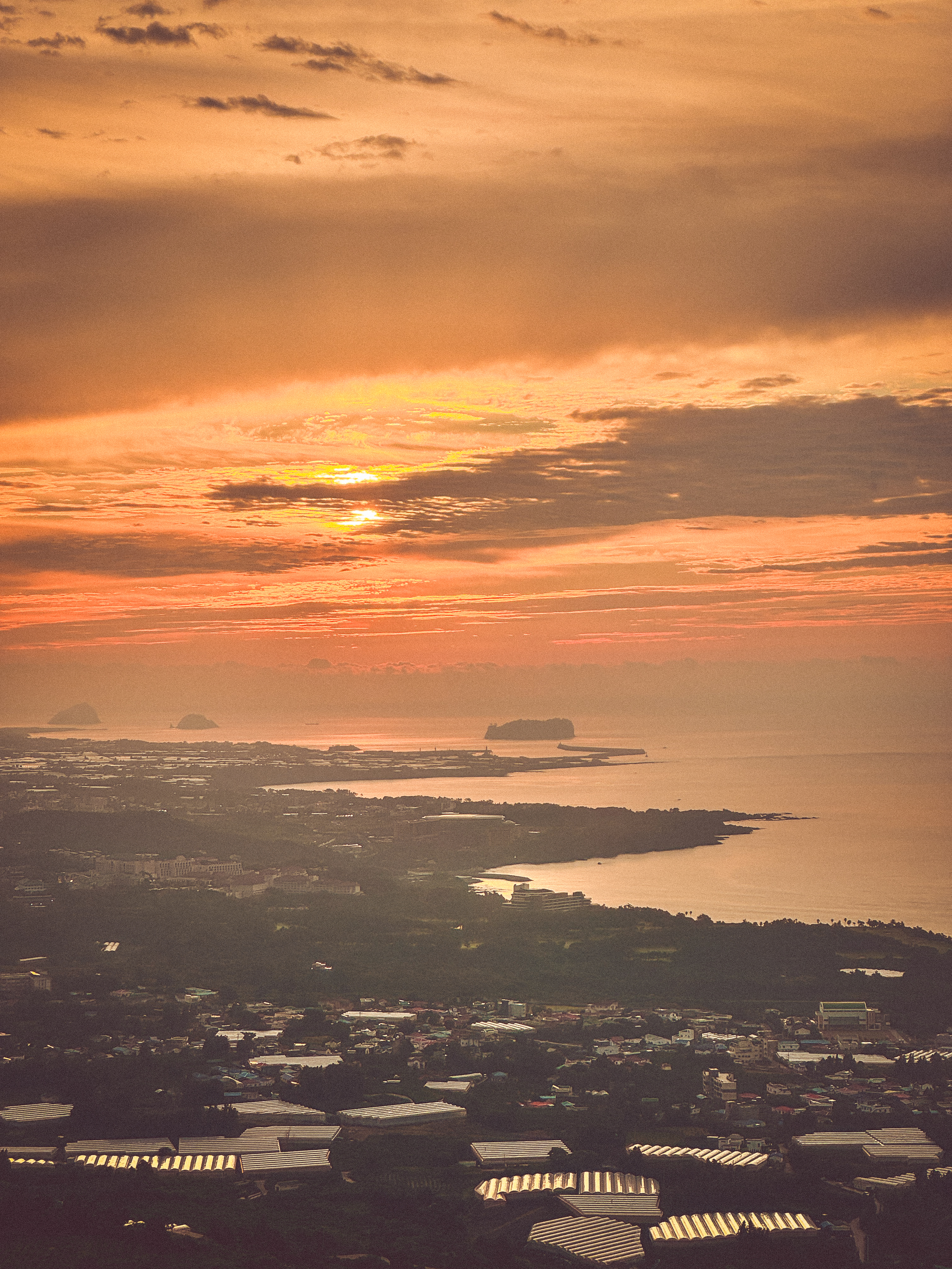 일출시간에 맞춰서 나가면 정말 붉게 물든 하늘을 볼 수 있다. 물론, 하늘이 허락해 줘야 가능한 광경이긴 하지만 말이다. 필자가 올라갔을 때는 구름이 좀 있기는 했지만 태양이 지평선 너머로 조금씩 올라오는 것을 우연하게 담아볼 수 있었다.