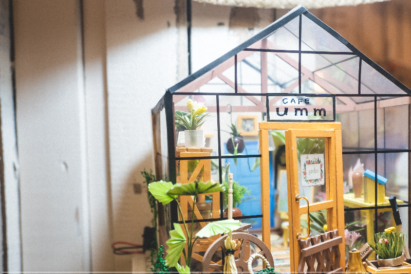 단순히 책들만 보러 오는 북카페와는 다른 차잇점이 이 곳에 존재한다. 바로, 카페 내부에 사장님께서 직접 꾸며 놓으신 아기자기한 인테리어를 감상하는 재미! 그 중에 카페건물을 마치 온실 정원처럼 꾸민 미니어쳐가 있어 촬영해보았다. 한 눈에 보아도 대충 꾸며놓은 것이 아닌 한땀한땀 정성들여 만들어 놓은 게 느껴진다. 손재주가 있으신 사장님인 것 같다...ㅎㅎ