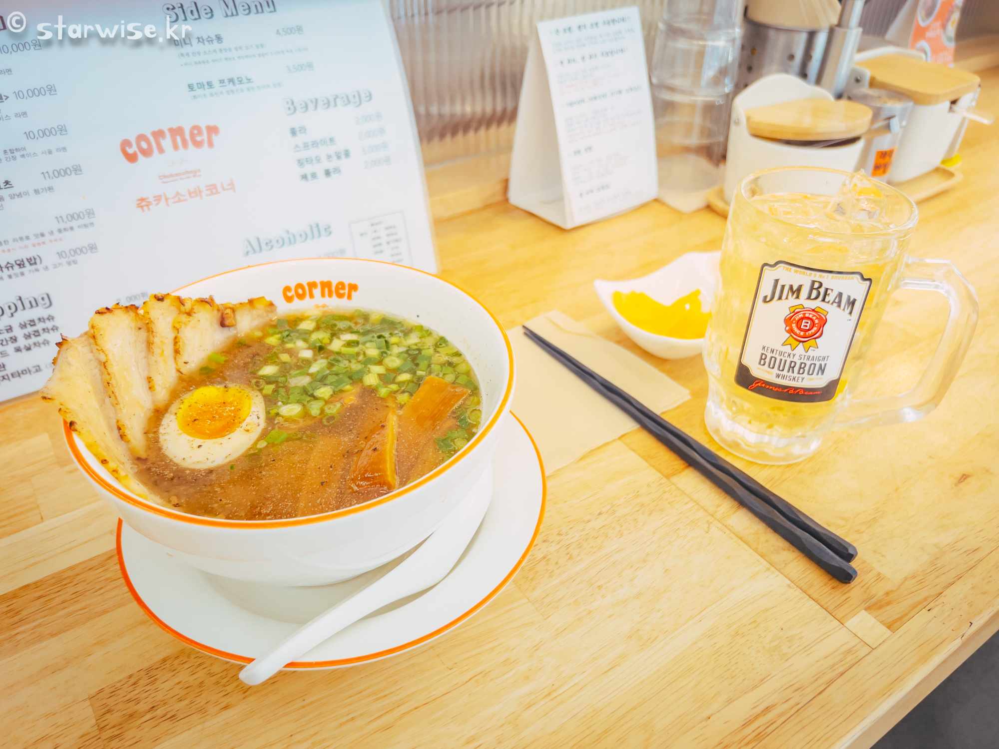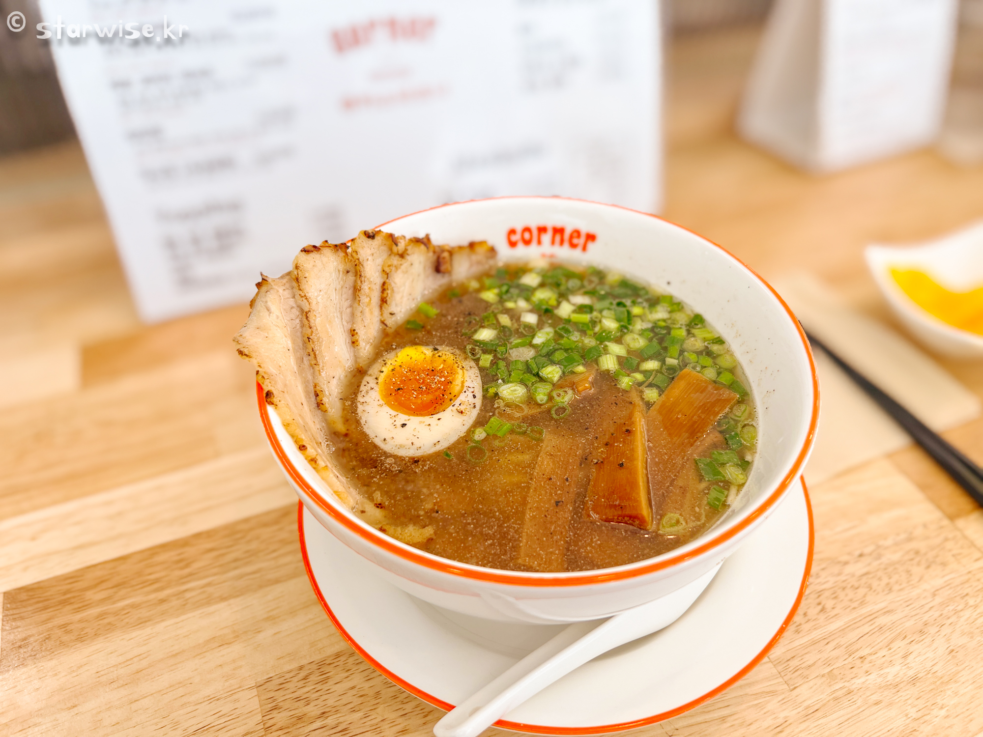 간장이 베이스가 된 라멘인데, 단백질 보충(?!)을 위해 구운 간장 차슈를 추가했다. (자세한 메뉴는 사진 참고!)