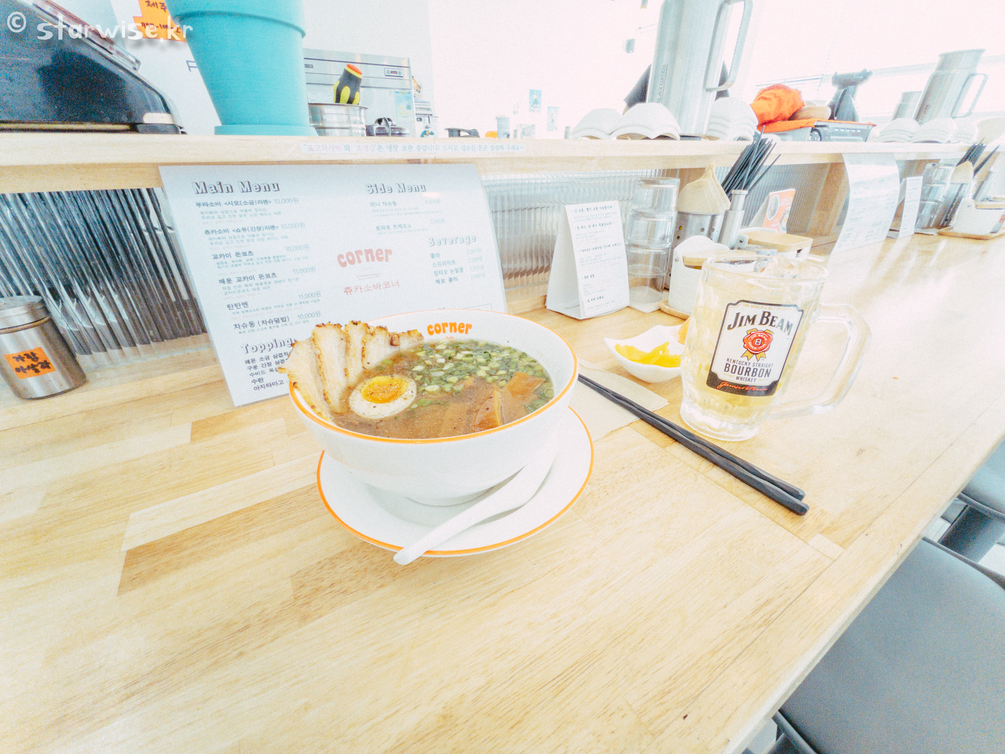 제주 속의 다양한 나라의 음식들 중, 일본 라멘(라면이라기보단 국수에 가깝다. 중화소바이기 때문에)의 깊은 맛과 한국 음식점 특유의 깔끔하고 흰색 바탕의 인테리어를 갖춘 음식점을 원한다면 이곳이다. 주방 안쪽을 바라볼 수 있는 ㄱ자 테이블 좌석이 여러 개 있기 때문에 혼밥족에게도 너무나도 좋은 공간이다. "츄카소바코너"의 다른 음식들이 궁금해져서 다시 방문해보고 싶어지는 공간이다. 이제 막 제주에 도착해서 독특한 음식을 찾거나 점심식사를 무엇으로 할지 고민하고 있을 때, 그리고 저녁에 술 한잔 하면서 배를 배불리 채울 수 있는 공간을 찾는다면 이곳을 추천해본다. 짜쪼름한 일본식 라멘을 찾는 그대! 이 곳을 한 번 방문해 보아라!