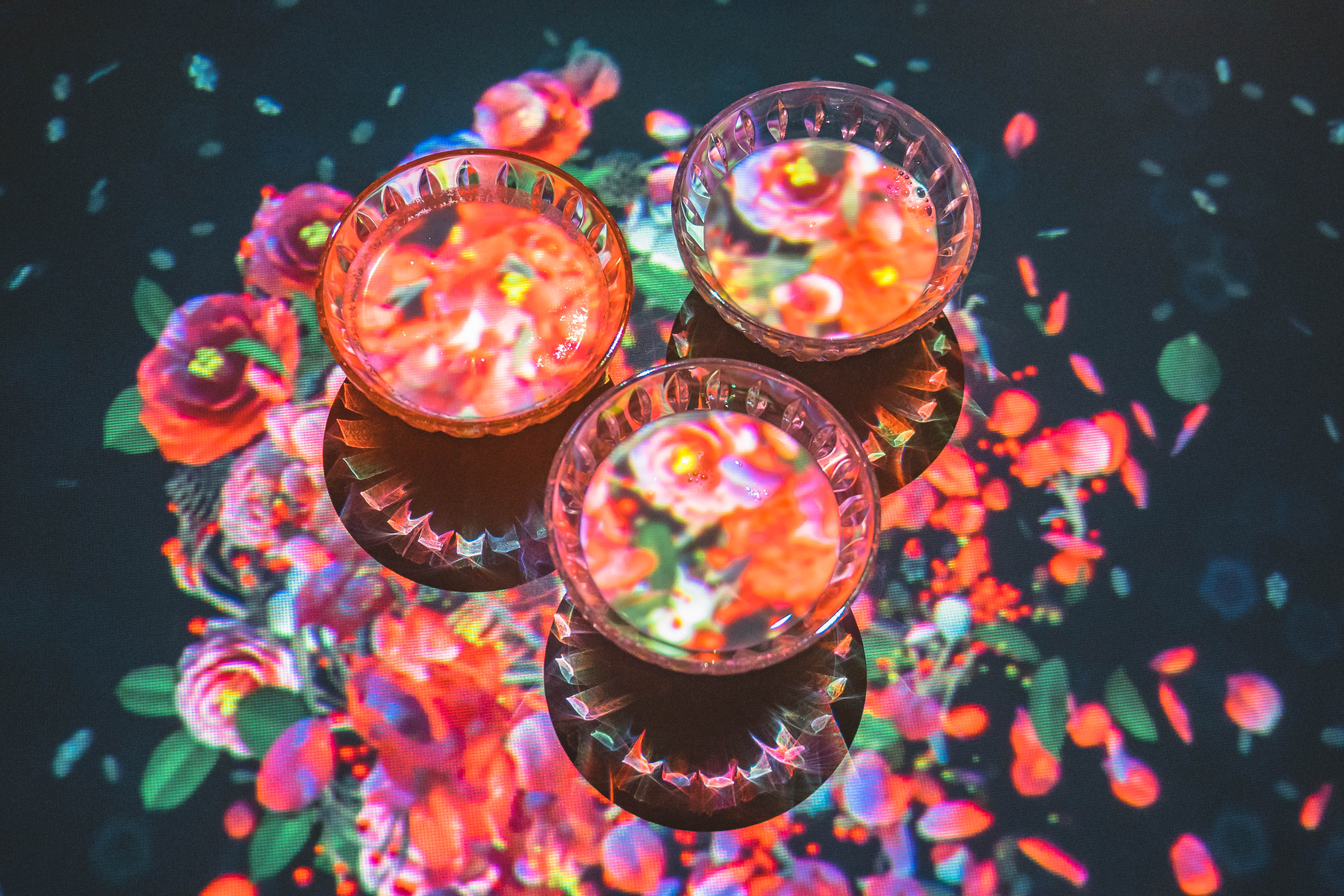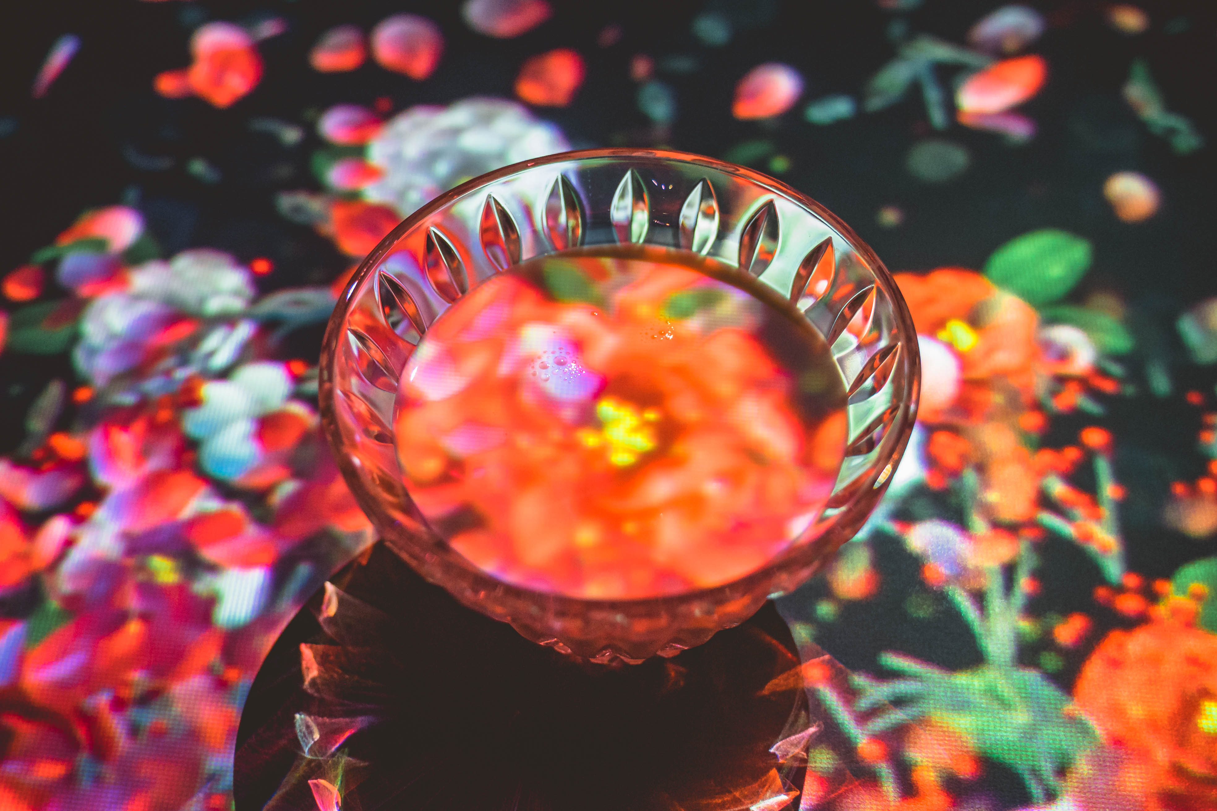 바로, 음료수를 책상위에 올려놓으면 음료수에 반응해서 음료수의 위쪽에서부터 꽃봉오리가 피어오르게 된느 것이다...!! 물론 입장부터 앉아 있을 수 있는 시간이 15분으로 한정되어 있고, 좌석도 종업원에 의해 지정된 자리에서만 앉아야 하는 단점이 있긴 하지만 말이다. (아마 내 생각에는 코로나 사태 때문에 일부러 띄워서 앉히려고 하는 게 아닐까 하는 추측이...) 음료수가 담긴 잔을 바로들고 마시면 꽃이 보이지 않고 가만히 책상위에 두고 있으면 꽃이 피면서 주변의 푸르른 이파리도 핀다. 그러다가 바람에 날려 자연스럽게 꽃이 흩어지게 된다.