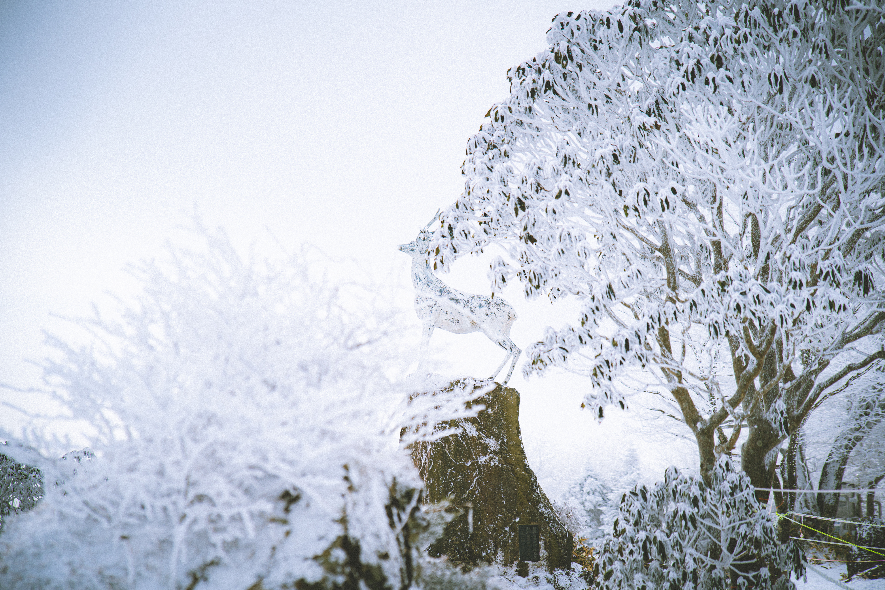 1100 고지 휴게소의 앞은, 사슴동상으로 유명하지만, 이곳만 보러 가는 곳이 아니다. 큰 도로를 건너면 작은 산책코스가 있어서 눈에 서린 나무들과 숲의 모습을 면밀하게 관찰할 수 있다. 여기까지 올라왔다면 꼭 길 건너에 있는 산책길을 걸어볼 것을 추천한다..!!
