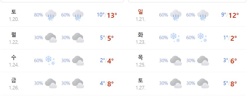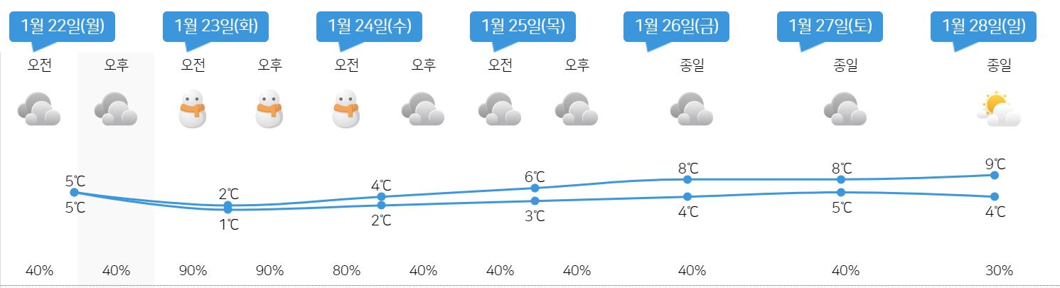 이제 겨울이 지나고 슬슬 봄을 향해 가는 요즘, 제주는 봄이 오는 건가? 착각이 들 정도로 따듯했다. 한낮의 기온이 16~18도까지 올라갔으니 봄이라고 할 수 있을 정도였다. 그렇지만 이렇게 봄이라는 생각은 착각이었다. 북극한파 기온전선이 제주로 내려온다. 다시 겨울이다. 제주는 섬이기 때문에 주변의 바다의 영향으로 영하 기온으로 떨어지는 경우가 거~의 없다. 대신에 엄청 습하기 때문에 (내륙지방에 비해서) 2~3도만 되어도 눈이 내리는 경우가 많다. 다음주가 그런 날씨로 예상된다. 비/눈이 예보되어 있고 계속 흐린 날씨다.