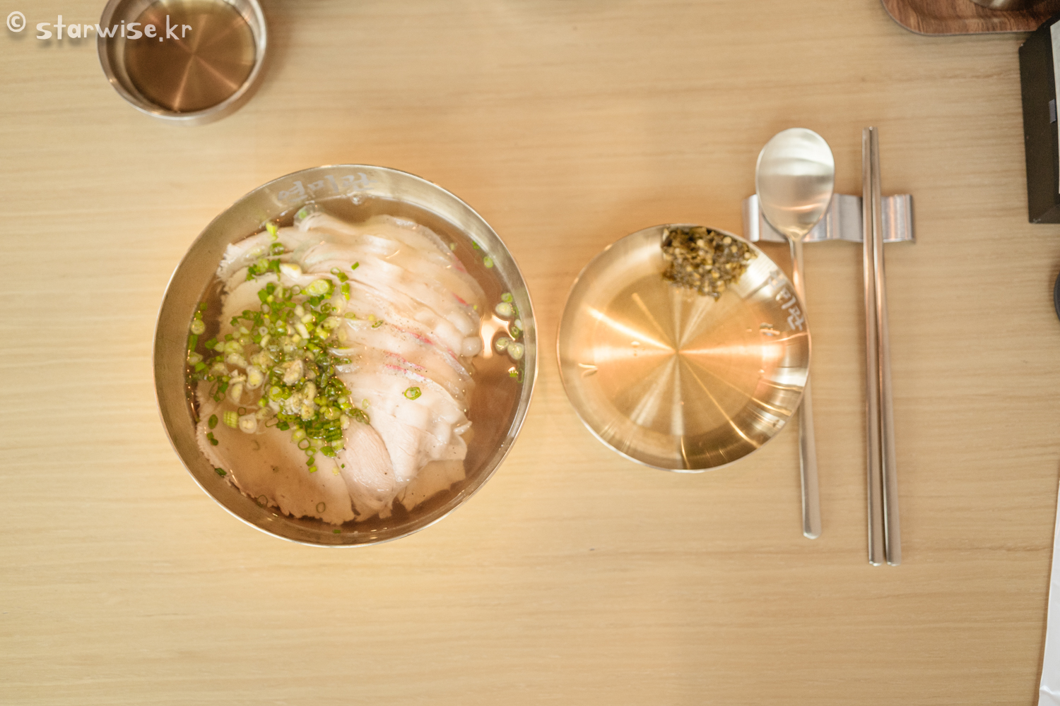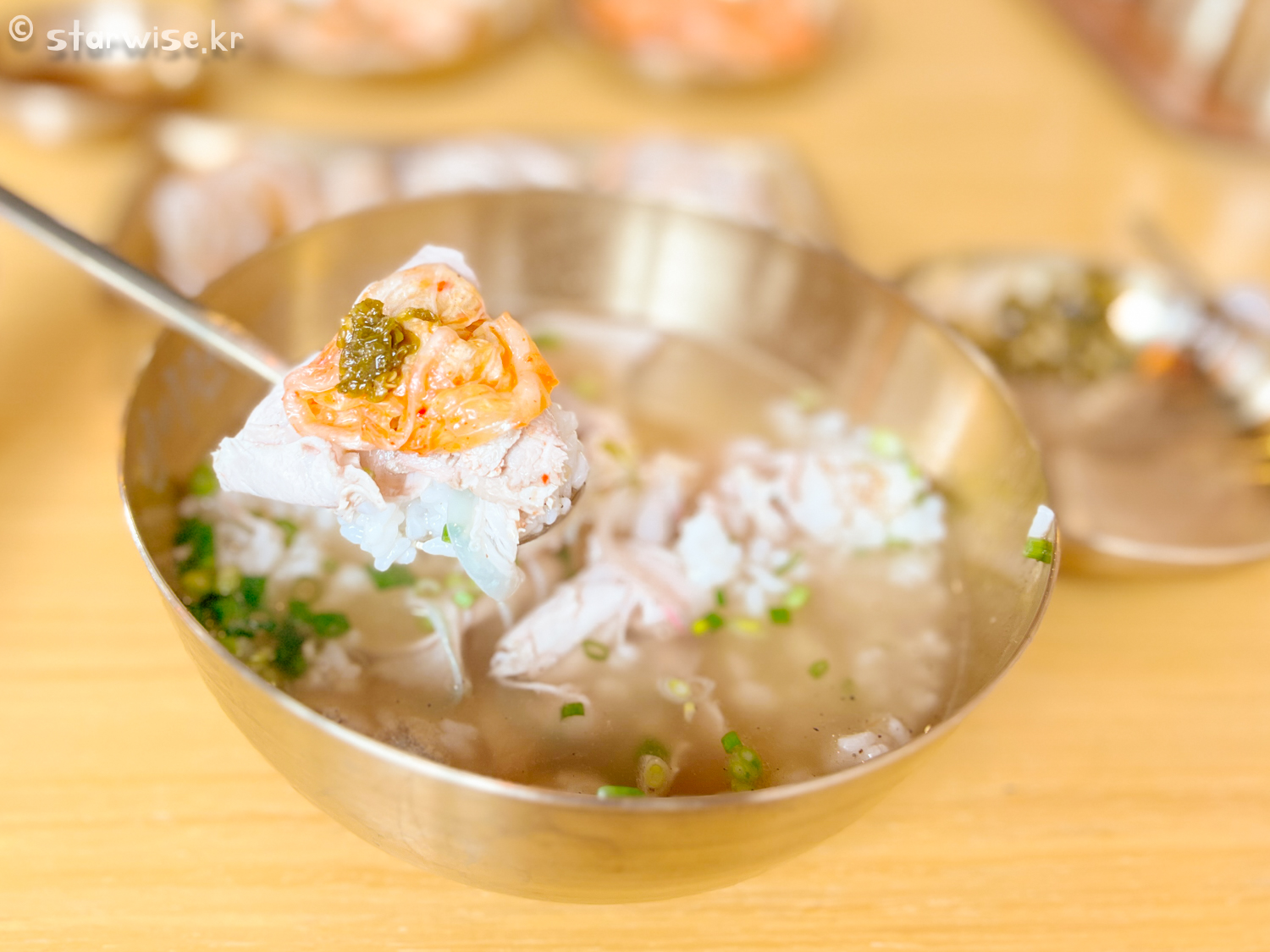 "이야.... 이맛이지..!!!"........ 는 아니다. 그렇지만 고소하고 담백한 것은 맞다. 다른 음식점들의 고기와 차별이 있는 것은 맞다. 그리고 그것이 국밥의 고기로써는 절대적 합격이다. 보통은 국밥이라고 엄청나게 우린 사골육수를 생각하기 마련인데 이곳의 국물은 깔끔하다. 정확히는 지방 하나 없이 순수 살코기로만 국물을 우려낸 것 같이 깔끔하다. 우유를 먹는 느낌이라기보다는 샤부샤부육수를 먹는 느낌의 깔끔함이다.