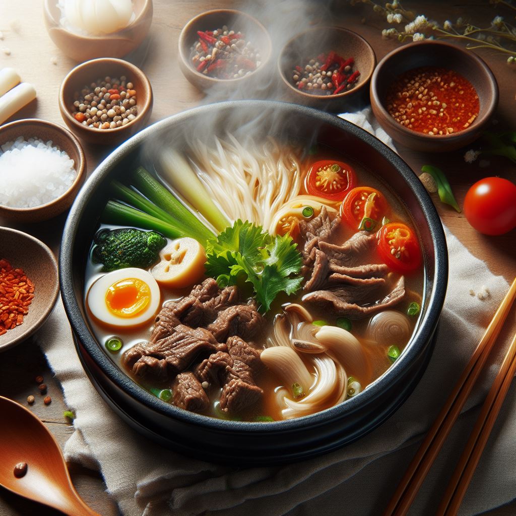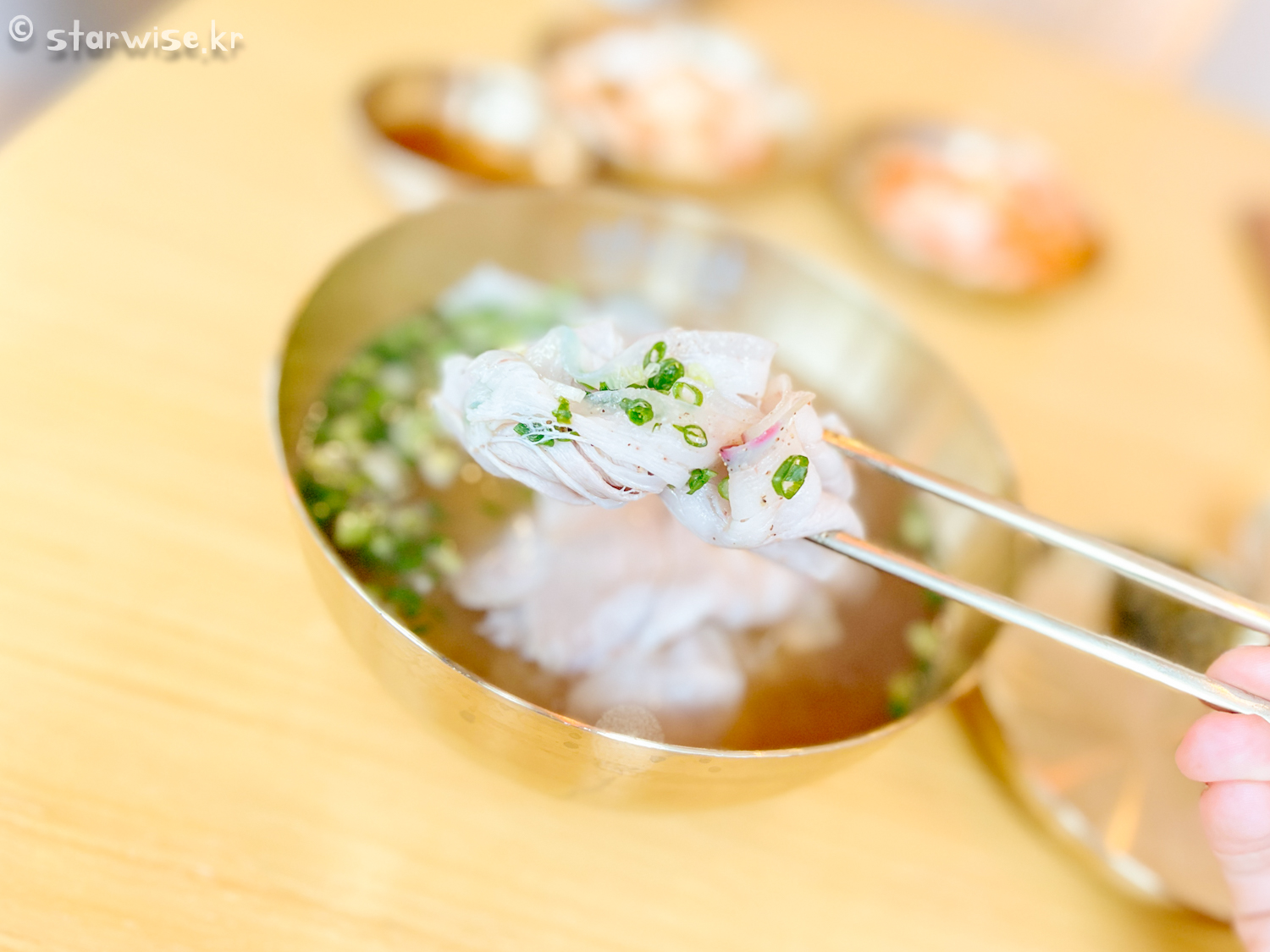 점점 더 맛있게! 자극적이게! 그리고 MZ세대의 입맛에 맞게 달콤 구수하게! 다른 말로 하면 엄청나게 조미료를 사용한다는 소리이자, 음식의 식재료를 싸구려로 쓴다는 소리와 같은 말이다. 이건 확실하게 알 수 있다. 제주에 있는 SNS음식점들은 죄다 그렇다. 그런데 이곳은 아니다! 정말 고유한 맛을 지키고 있는, 자극적이지 않아서 더욱 정감 가는 맛이 느껴진다. 음식이 보여주는 비주얼도 그렇다. 공식 인스타그램(https://www.instagram.com/jeju_7422333)도 그렇고 "유료"블로그 리뷰에서 보면 엄청나게 맛깔나고 자극적이게 나오지만 실제로 보면 "응?"이라 할 정도로 소박하다. 그래서 더욱 기대되었고 먹어보지 않은 맛이라고 느꼈다. 오른쪽 작은 접시에 조금 담겨있는 고추무침은 양념인데, 마치 탕수육의 부먹찍먹처럼 고기 한점 한 점에 찍어서 먹어도 되고 곰탕에 희석해서 먹어도 된다. 나름 커스터마이징(?)이 가능한 부분이다.