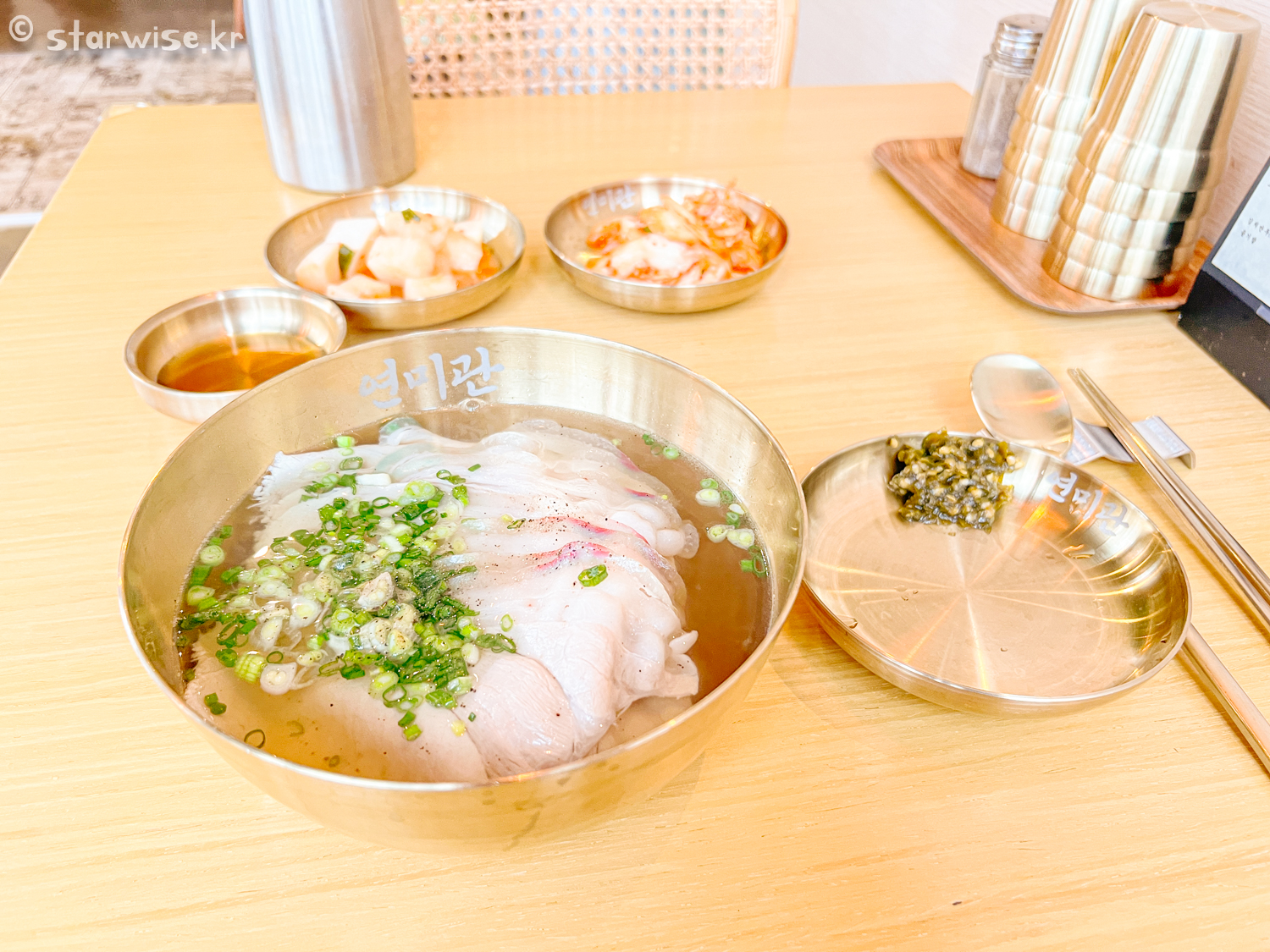 여행의 목적은 사람마다 다르지만, 여행에 있어 특색 있는 음식을 맛보는 것도 중요한 이유 중에 하나라고 생각한다. 그런의미에서 연미관은 제주돼지로 만든 특색있는 국밥이라는 점에서 제주여행의 시작을 알리는 독특한 경험을 선사한다고 생각한다. 이곳에서만 맛볼 수 있는 음식이다. 너무나도 깔끔한 인테리어에 식기류들도 너무나도 단정해서 여긴 100% 체인점이다!라고 생각했는데 보기 좋게 틀렸다. 전국에 딱 1곳, 제주에만 있다. 그래서 더더욱 특별하다. 내가 믿는 카카오지도 기준 평점 5점 만점의 음식점이고 리뷰가 1000개가 넘을 정도면 다녀간 많은 사람들도 인정한다고 생각한다. 그리고, 특히나 제주도청 주변은 점심때 그리고 퇴근 후에 항상 공무원들의 선택을 받아야 하기 때문에 경쟁력도 있다.