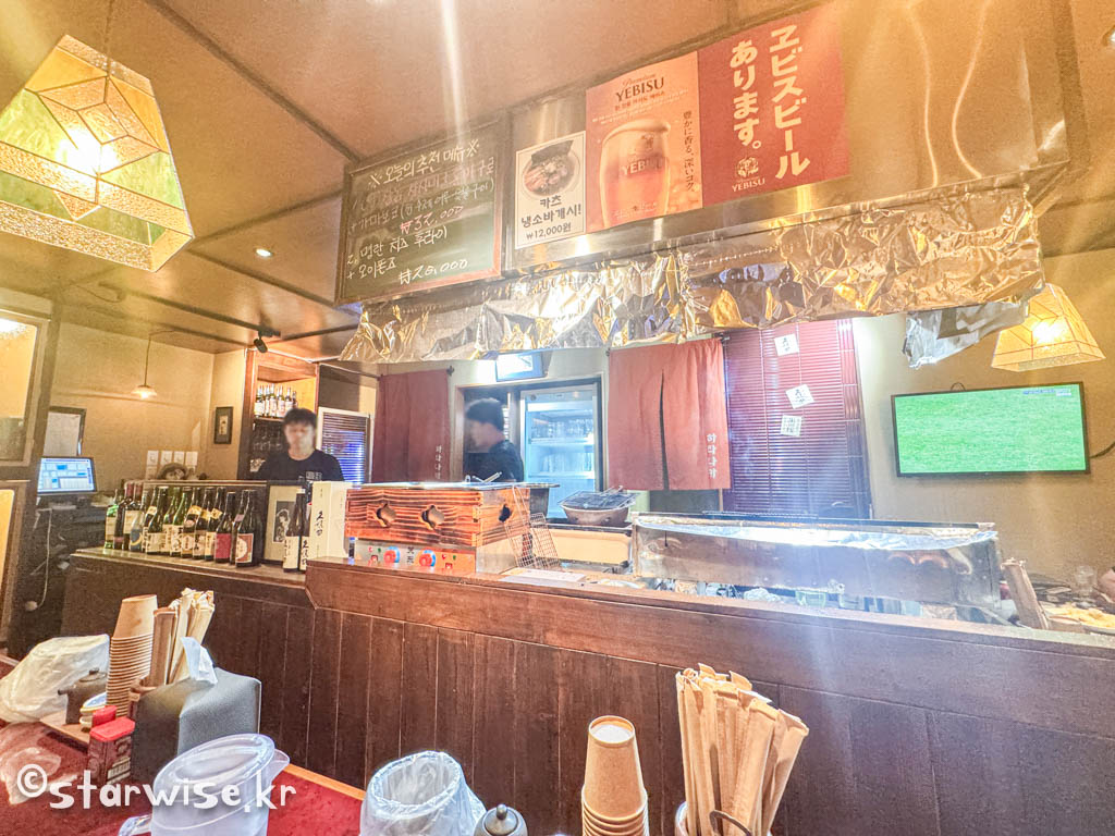 오랜만에 정말로 멋진 공간을 발견한 것 같다. 가게도 크지 않고 좌석 간의 간격도 넓진 않지만 정겨운 공간이다. 일본식 이자카야라고 해놓고 인테리어는 한국식으로 깔끔하고 밝은 톤으로 구성한 경우가 많은데 이곳은 아니다. 진짜로 일본으로 여행한 느낌이다. 직원분들께서 콘셉트로라도 "이랏샤이마세!"라고 해주셨으면 진자 일본에 온 줄 착각했을 것이다..ㅋㅋ