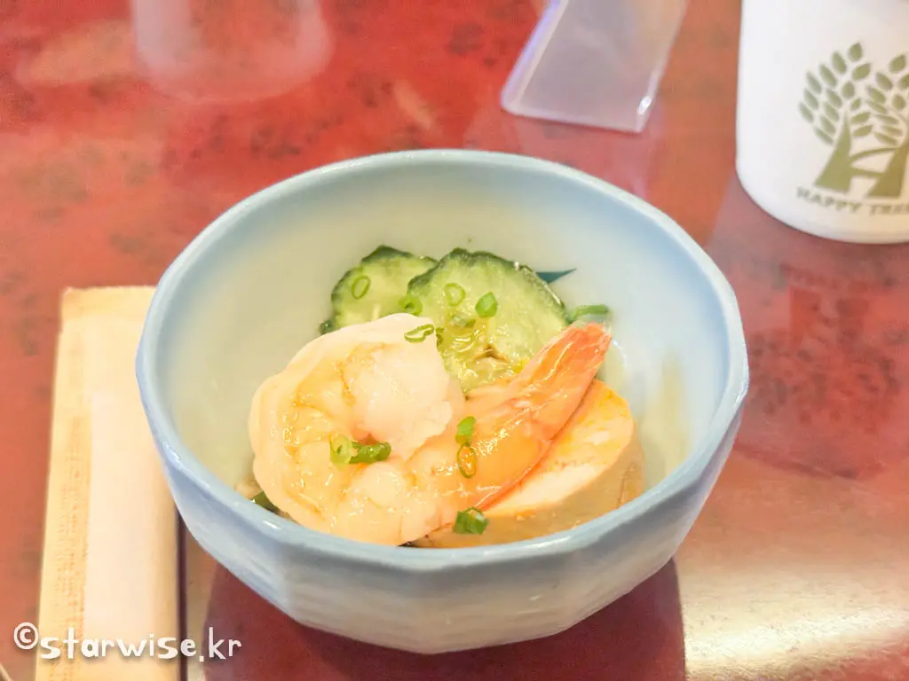 식전음식으로 나온 오토시. 매일 그 메뉴가 바뀌기 때문에 뽑기를 하는 듯한 기분이 나기도 한다.