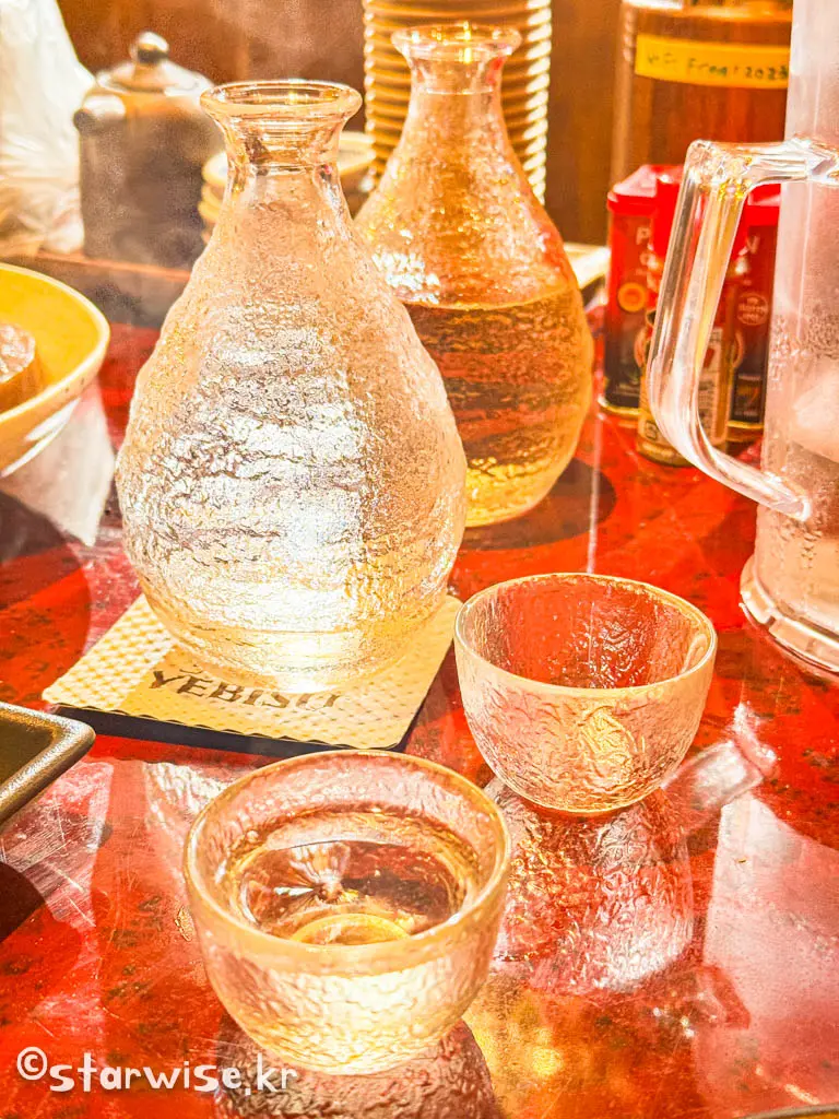 차가운 맥주에 질렸다면 뜨거운 사케와도 함께 할 수 있는 이곳! 큰 병으로 시키면 2명이 함께 마셔도 충분하다. 지금도 충분히 맛있는 술이지만 날이 추워지면 더더욱 빛을 발하는 아츠캉(뜨거운 술)이다!