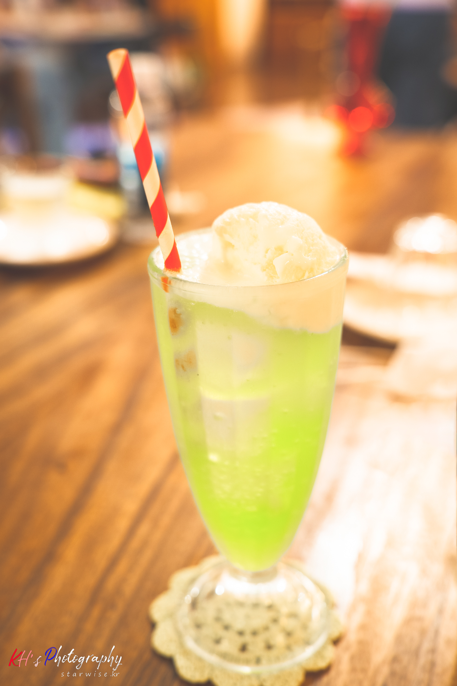 사실, 식사도 식사이지만 술안주로 정말 적격이다. 그래서 다양한 주류를 팔고 있는데, 제주의 젊은 사람들 사이에서 유행하는 소주 칵테일인 한라토닉을 팔고있다..!! 그리고 레드/화이트가 아닌 핑크(?)와인도 한잔 단위로 팔고 있었다. 그렇지만! 나는 운전을 해야했기 때문에 술은 일행분들이 드시고 ㅋㅋ 나는 한국에선 보기 힘든 메론소다를 주문해보았다.