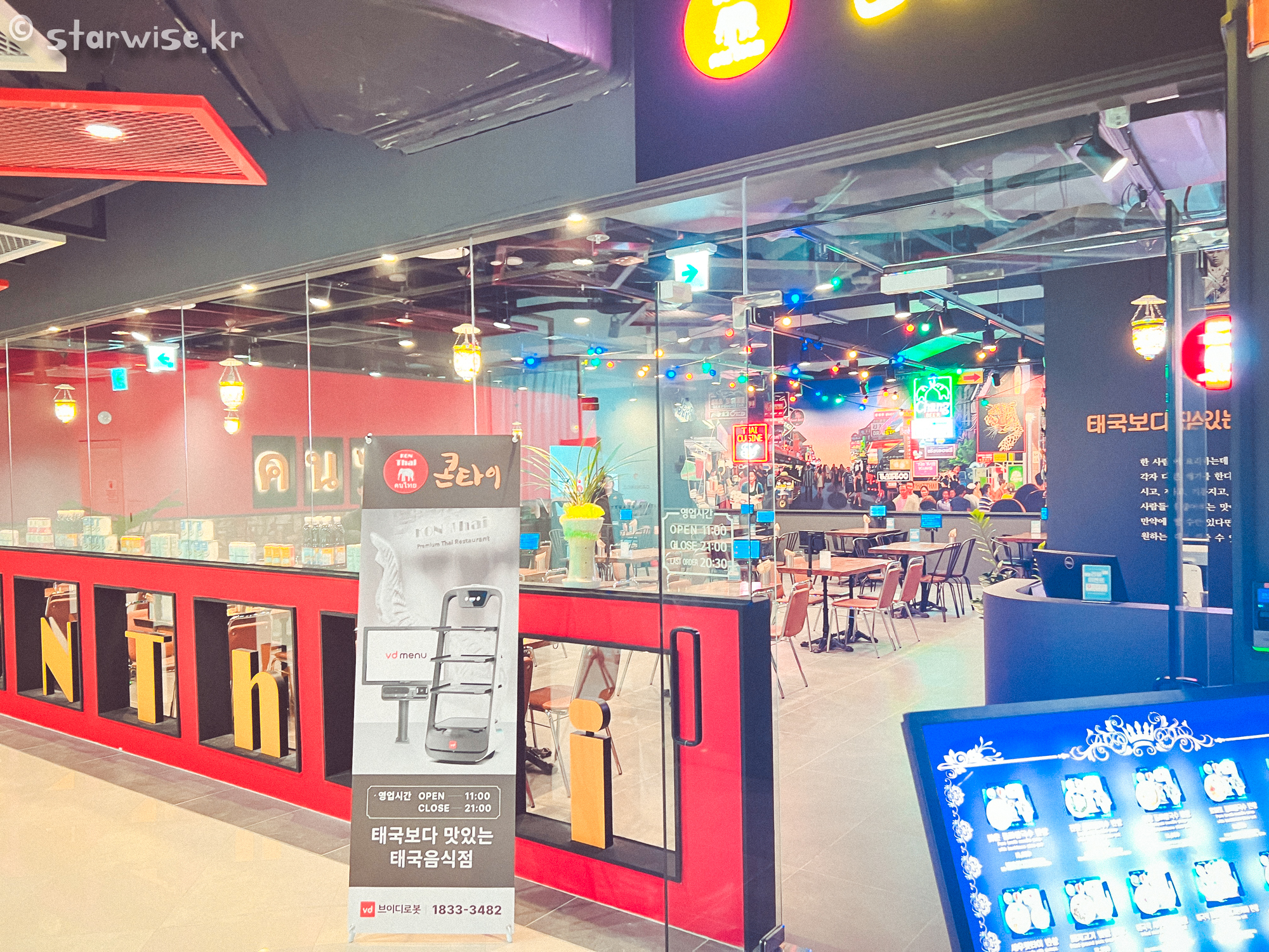 가게 내부는 깔끔했다. 아마, 컨셉이 태국의 일반적인 모습보다는 파티의 도시인 '파타야'나, '카오산로드'를 본떠서 콘셉트를 잡은 것 같았는데, 조명이 나름 잘 꾸며졌다고 생각했다. 다만, 저녁시간 때에 갔음에도 넓은 홀에 비해 손님이 1팀만 있어서 여기 믿고 먹어도 되나? 하는 생각이 살짝 들기도 했었다.