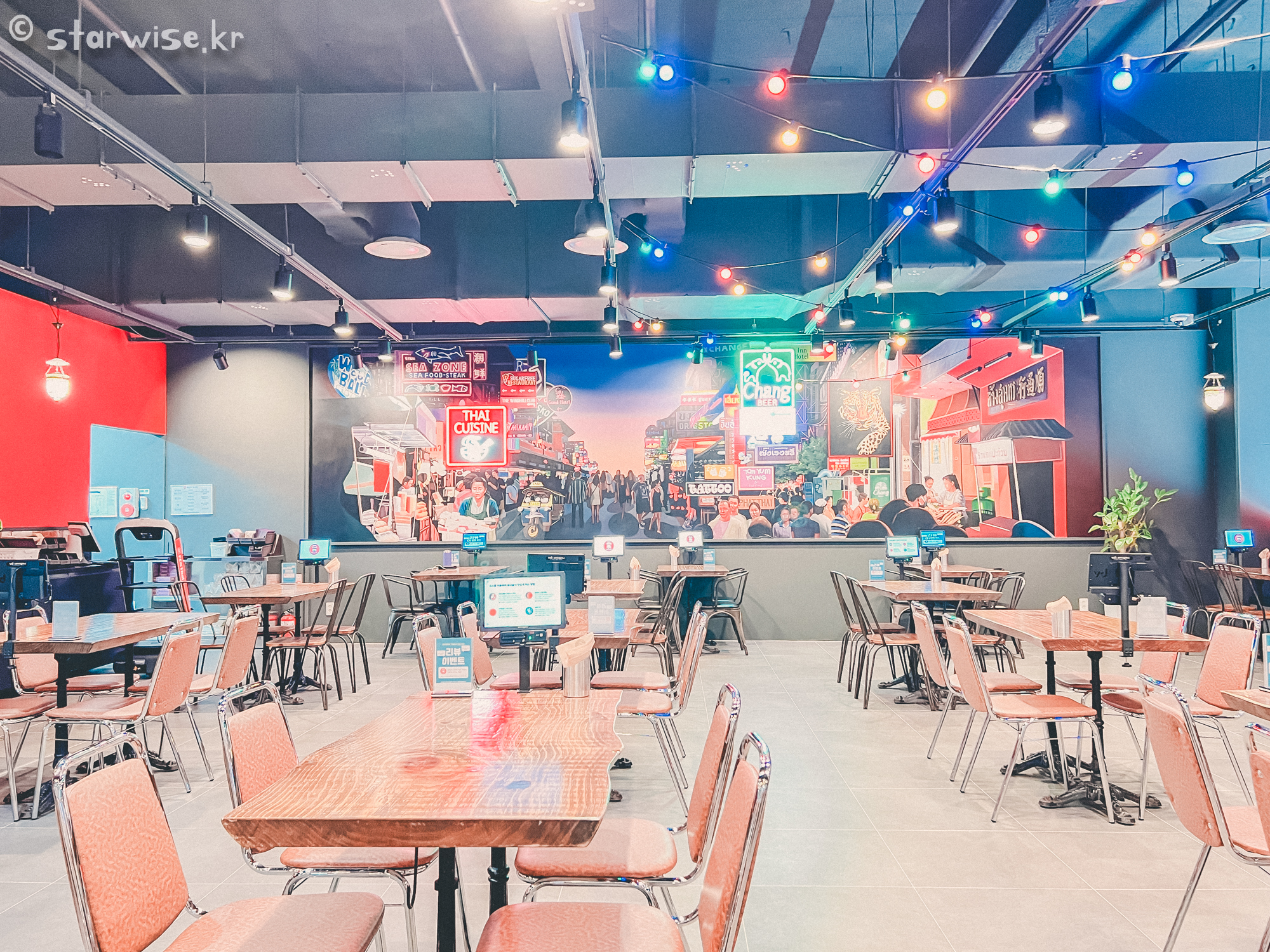 가게 내부는 깔끔했다. 아마, 컨셉이 태국의 일반적인 모습보다는 파티의 도시인 '파타야'나, '카오산로드'를 본떠서 콘셉트를 잡은 것 같았는데, 조명이 나름 잘 꾸며졌다고 생각했다. 다만, 저녁시간 때에 갔음에도 넓은 홀에 비해 손님이 1팀만 있어서 여기 믿고 먹어도 되나? 하는 생각이 살짝 들기도 했었다.