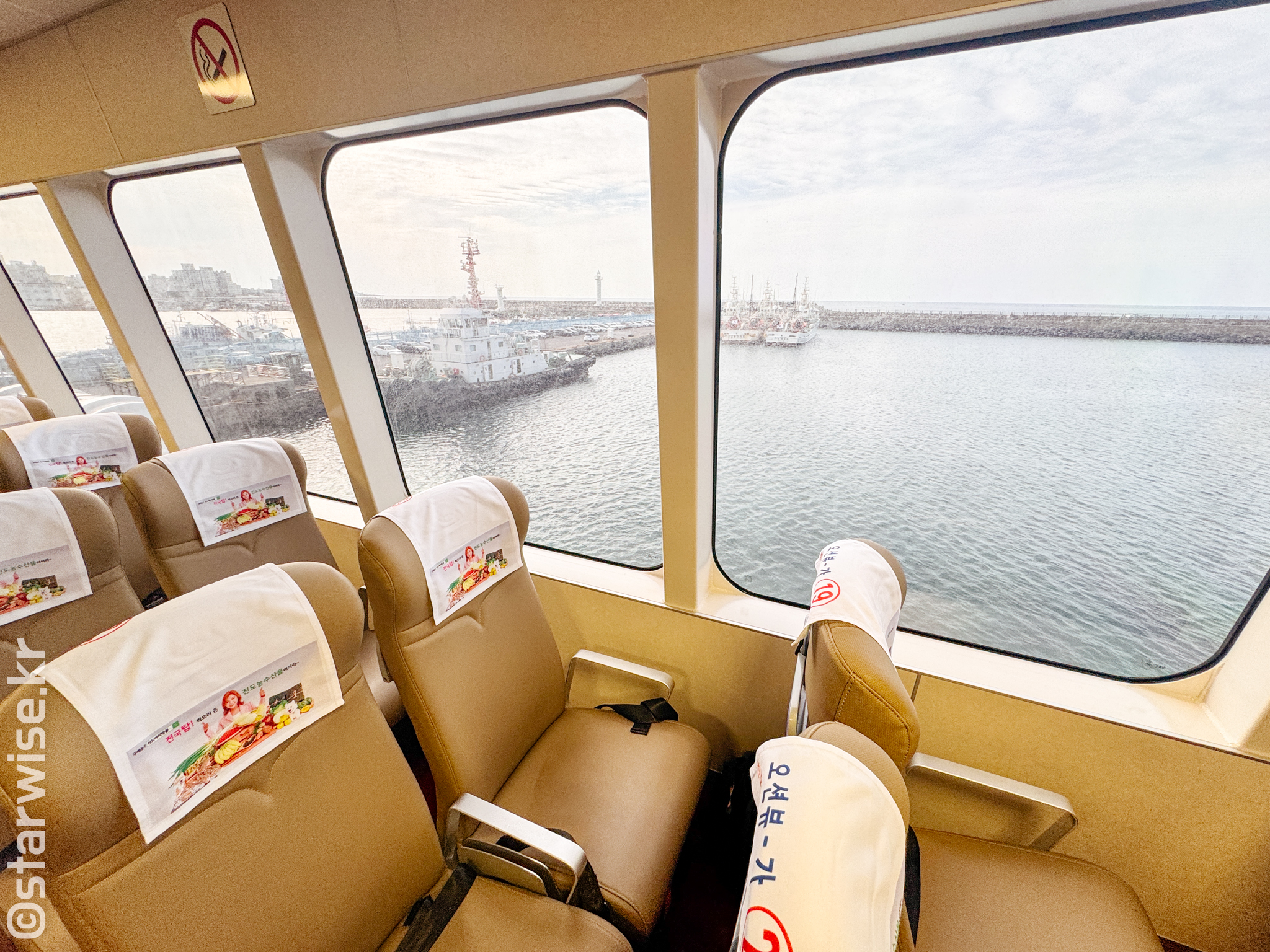 좌석은 일부러 갈 때는 창가를 바라볼 수 있는 공간으로 골랐다. 이코노미와는 다르게 인터넷에서 사전 좌석예약이 가능했기에 창문 바로 옆에 좌석을 구해 편하게 갈 수 있었다. 파도 때문에 자주 결항되기도 한다는 추자도행 배편은, 이 날만큼은 잔잔한 파도로 둥실둥실 배를 떠받히고 있었다.