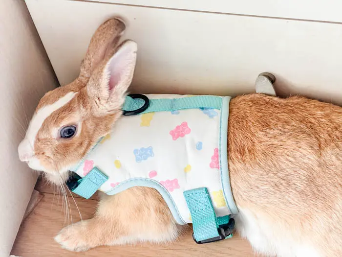 하네스는 토끼가 이상한 곳으로 도망쳐서 못 잡을 수 있는 가능성을 차단할 뿐만 아니라 토끼 스스로를 지킬 수 있는 보호자의 책임입니다!