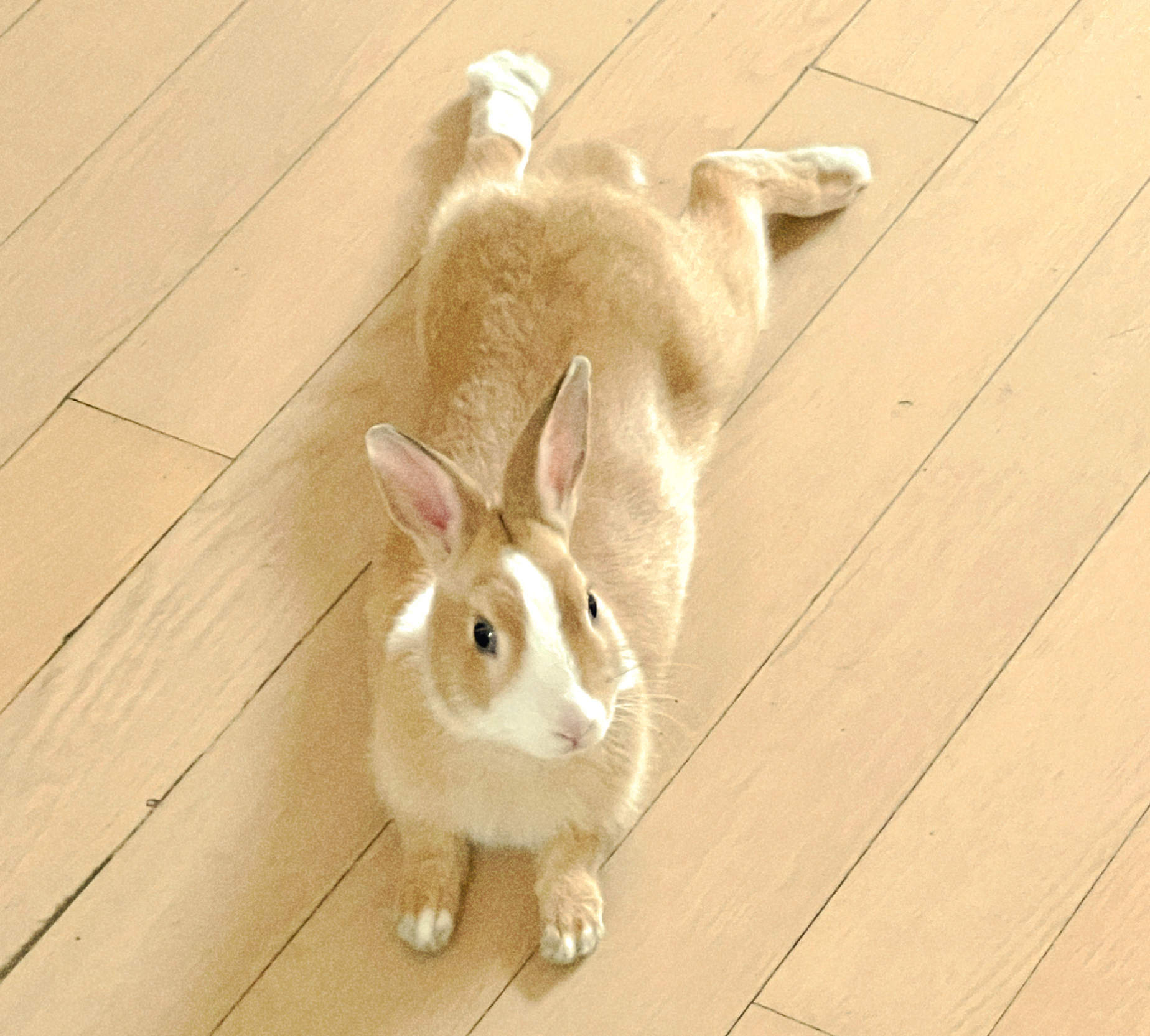 이 정도로 안정감을 가지기 위해서는 보호자가 쉬는 날에는 되도록이면 약속을 잡지 말고 넓은 거실이나 풀어줄 수 있는 방에 토끼와 함께 있는 게 보호자와의 유대감을 위해서라도 좋습니다.