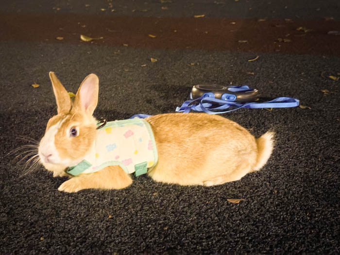 1) 토끼는 원칙적으로 초식동물, 즉 먹이사슬 최하위 동물이기 때문에 겁이 많기도 하고 다른 동물들에게 의도치 않게 공격을 당하는 경우가 있기 때문에 야외산책 시에는 "반드시" 하네스를 착용해야합니다.