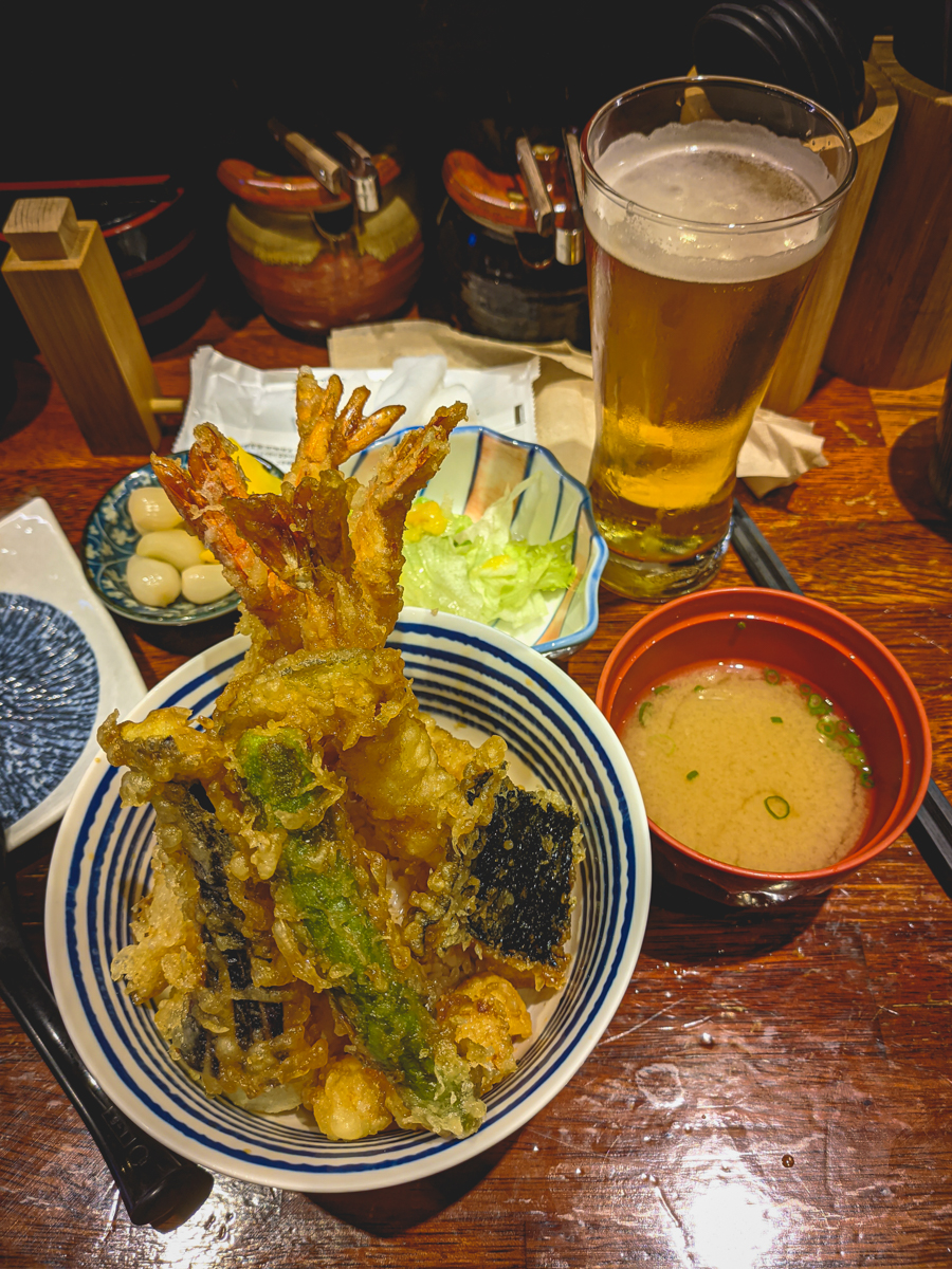 샐러드를 먹으며 맥주를 반 쯤 비울 때 쯤, 주문한 에비텐동이