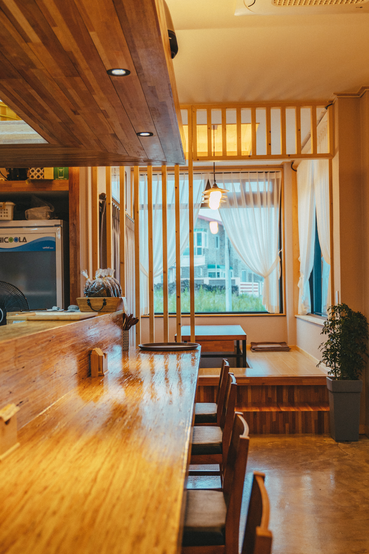 바닷가를 바라볼 수 있는 창가에는 사람이 제법 있었지만, 주방을 맞대고 있는